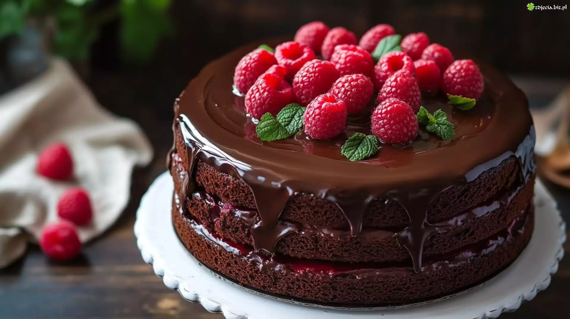 Zdjęcie Grafika, Ciastko, Maliny, Listki, Mięta
