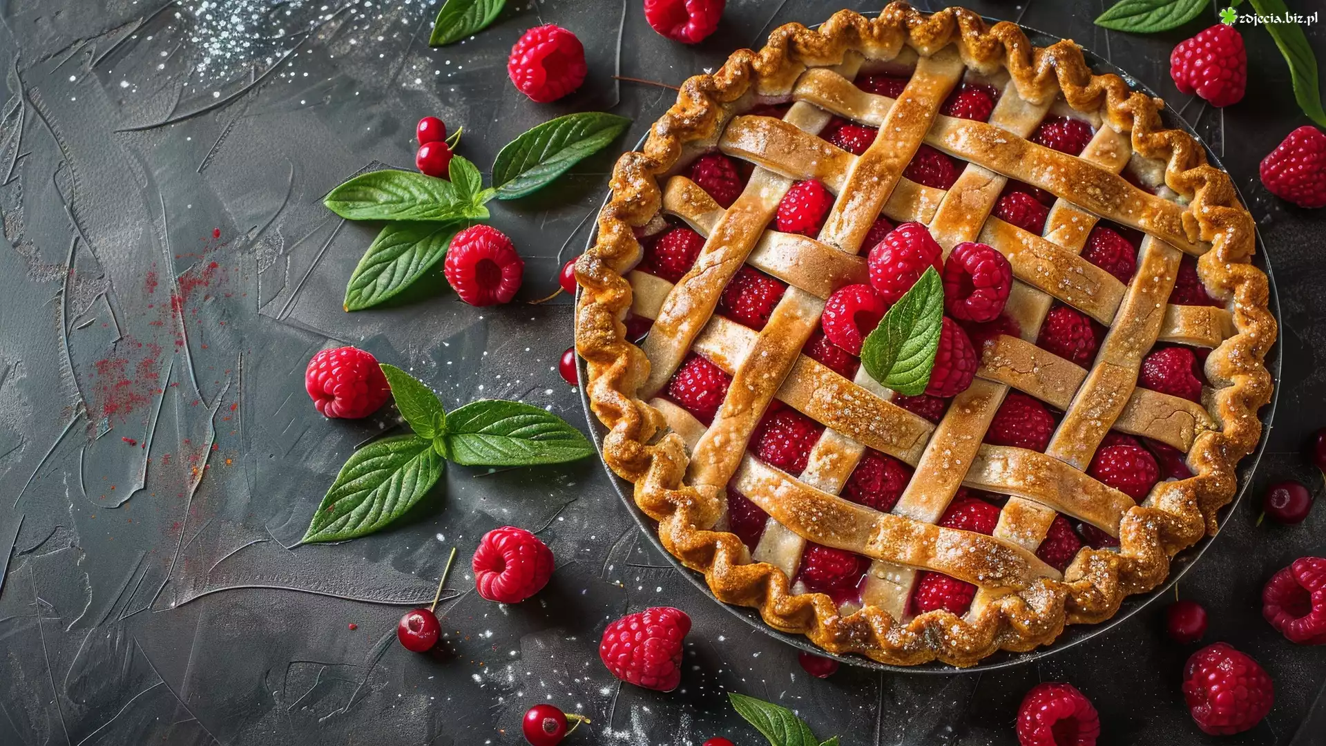 Zdjęcie Ciasto, Maliny, Listki