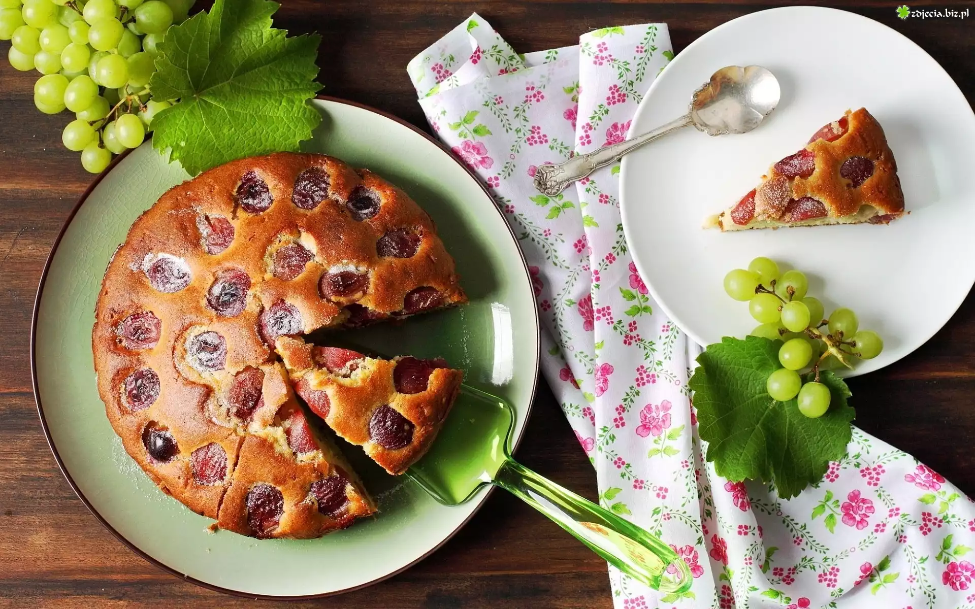 Zdjęcie Ciasto, Talerzyki, Serwetka, Winogrona