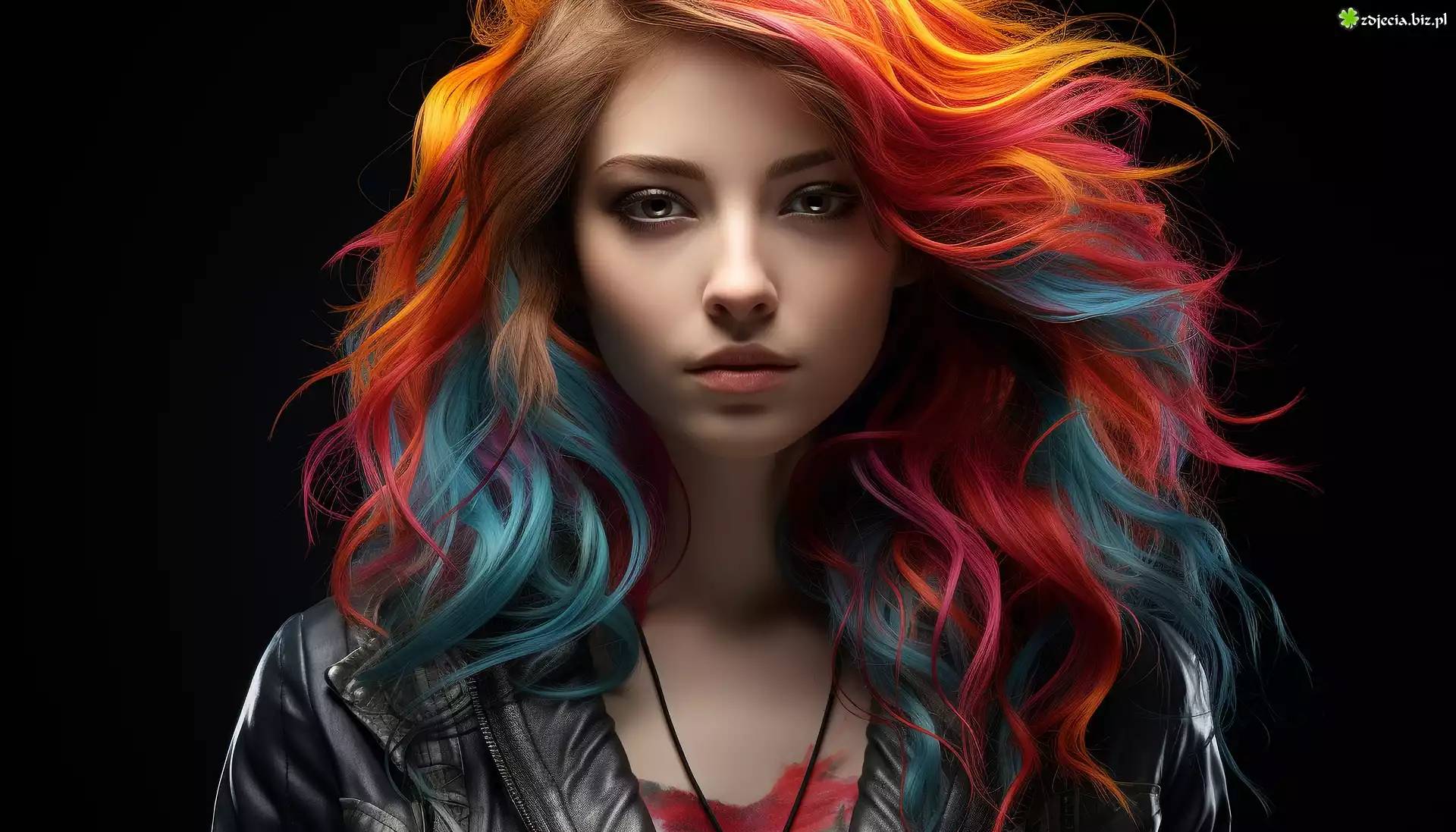 Zdjęcie Kobieta, Kolorowe, Włosy, Ciemne, Tło, 2D