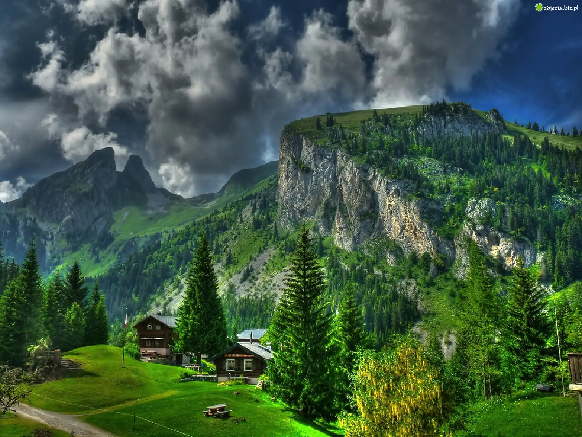 Deszcz, Chmury Góra Niebo, Chmury, Jezioro, Kwiaty Góra, Drewniana chatka Góra Plaża, Morze, Chmury Chmury Łąka, Kwiaty, Niebo, Lawenda wąskolistna Góra, Rzeki Jezioro, Odbicie, Gór Chmury, Zachód, Słońca, Woda, Palma Zachód Słońca, Chmury Europa, Góry Chmury, Przebijające, Promienie, Linia, Transmisyjna
