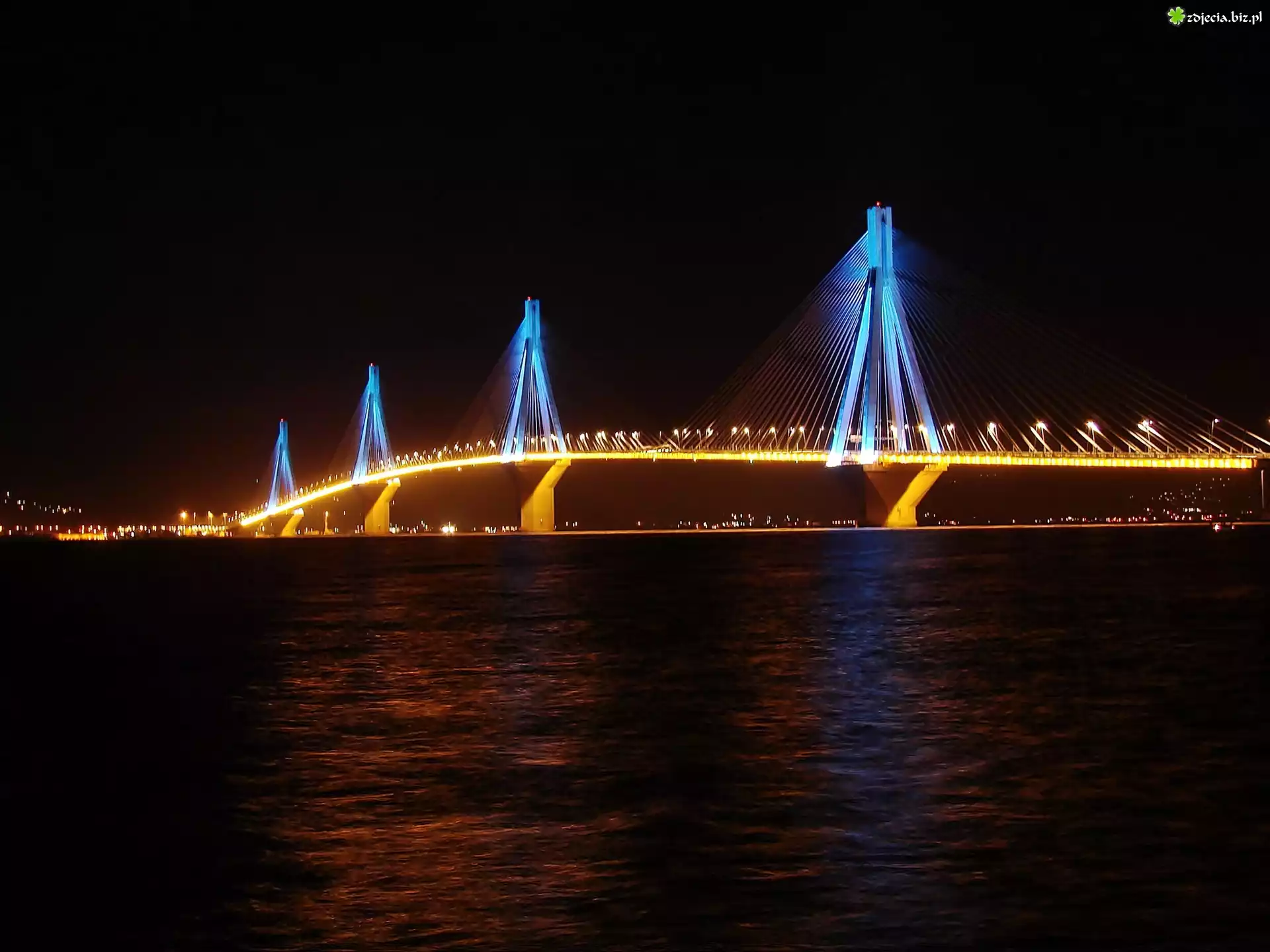 Zdjęcie Morze, Cieśnina, Riońska, Most, Rio, Antirio, Noc