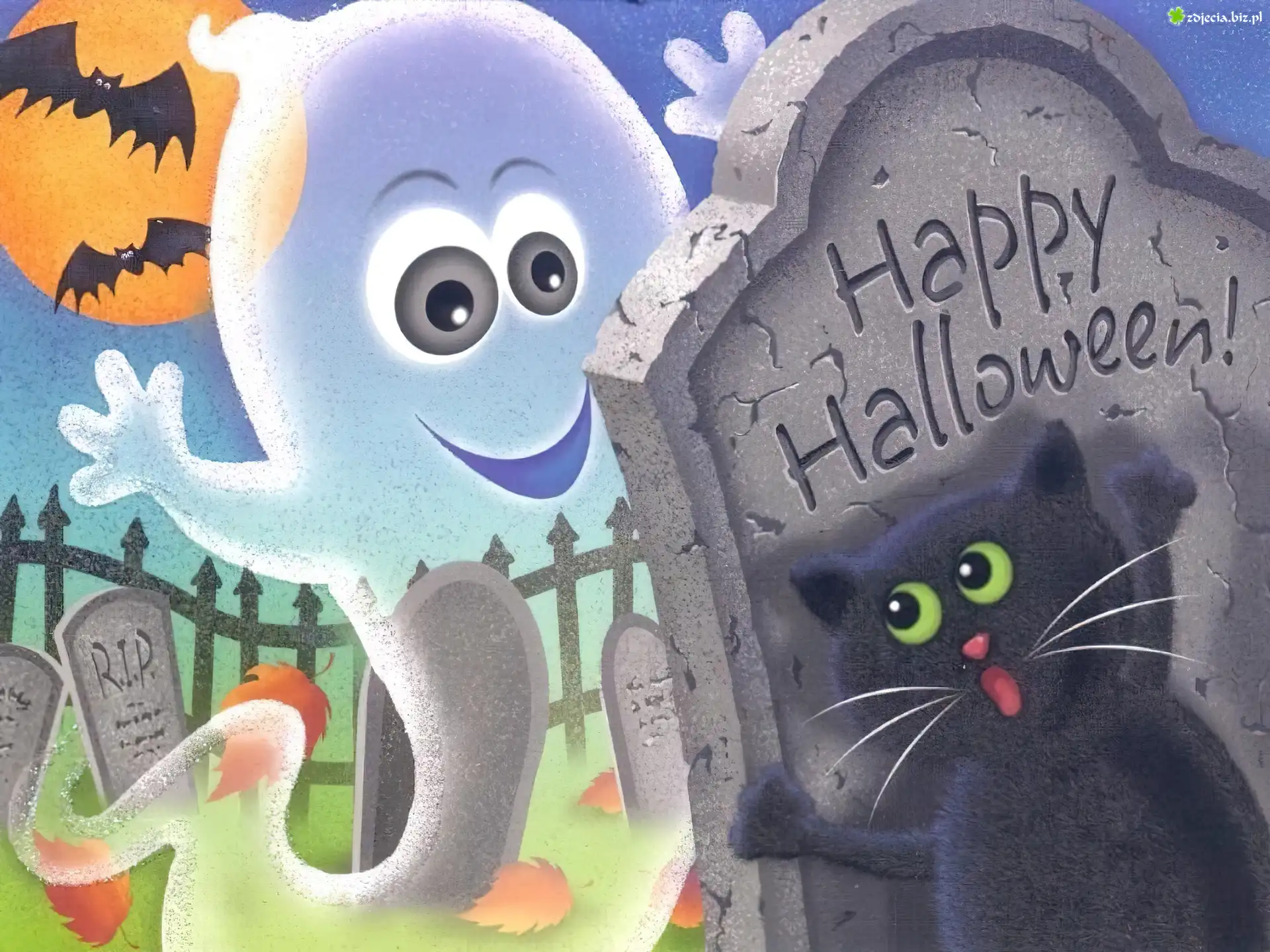 Zdjęcie Halloween,cmentarz, kot