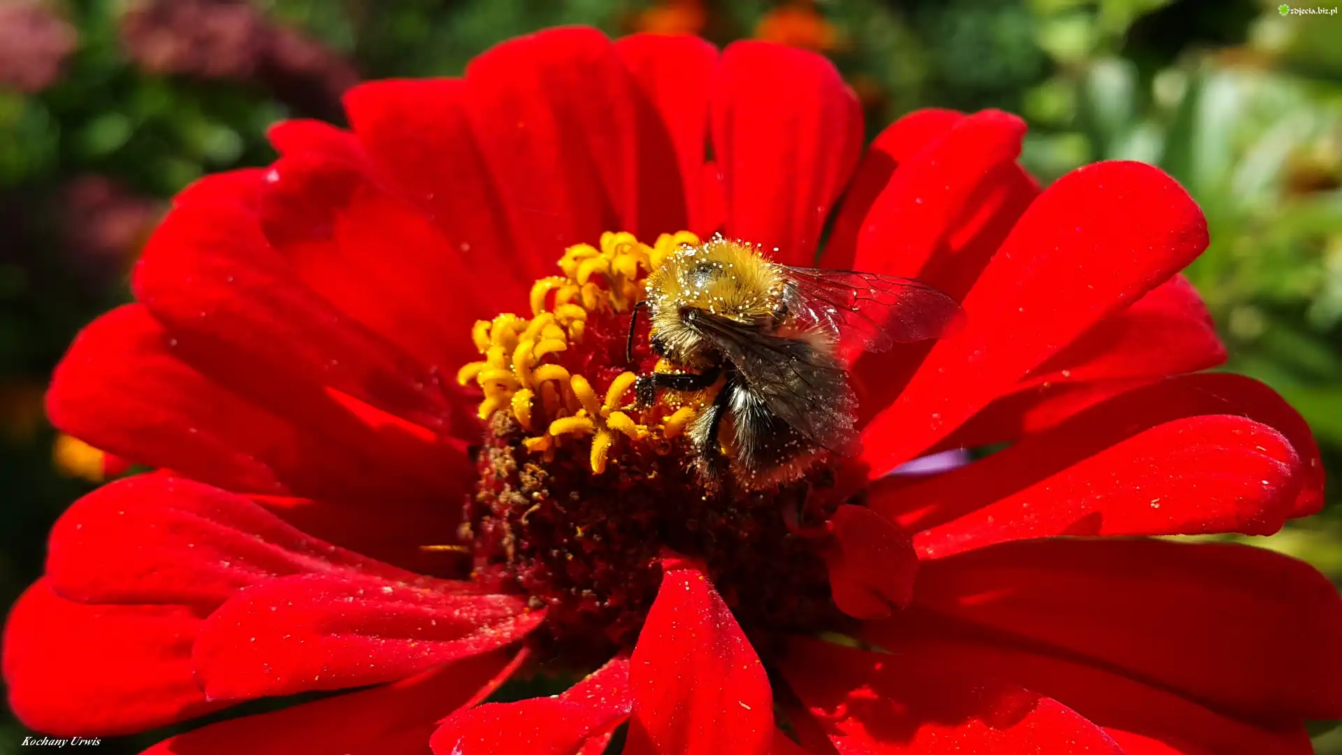 Zdjęcie Czerwona, Cynia, Pszczoła