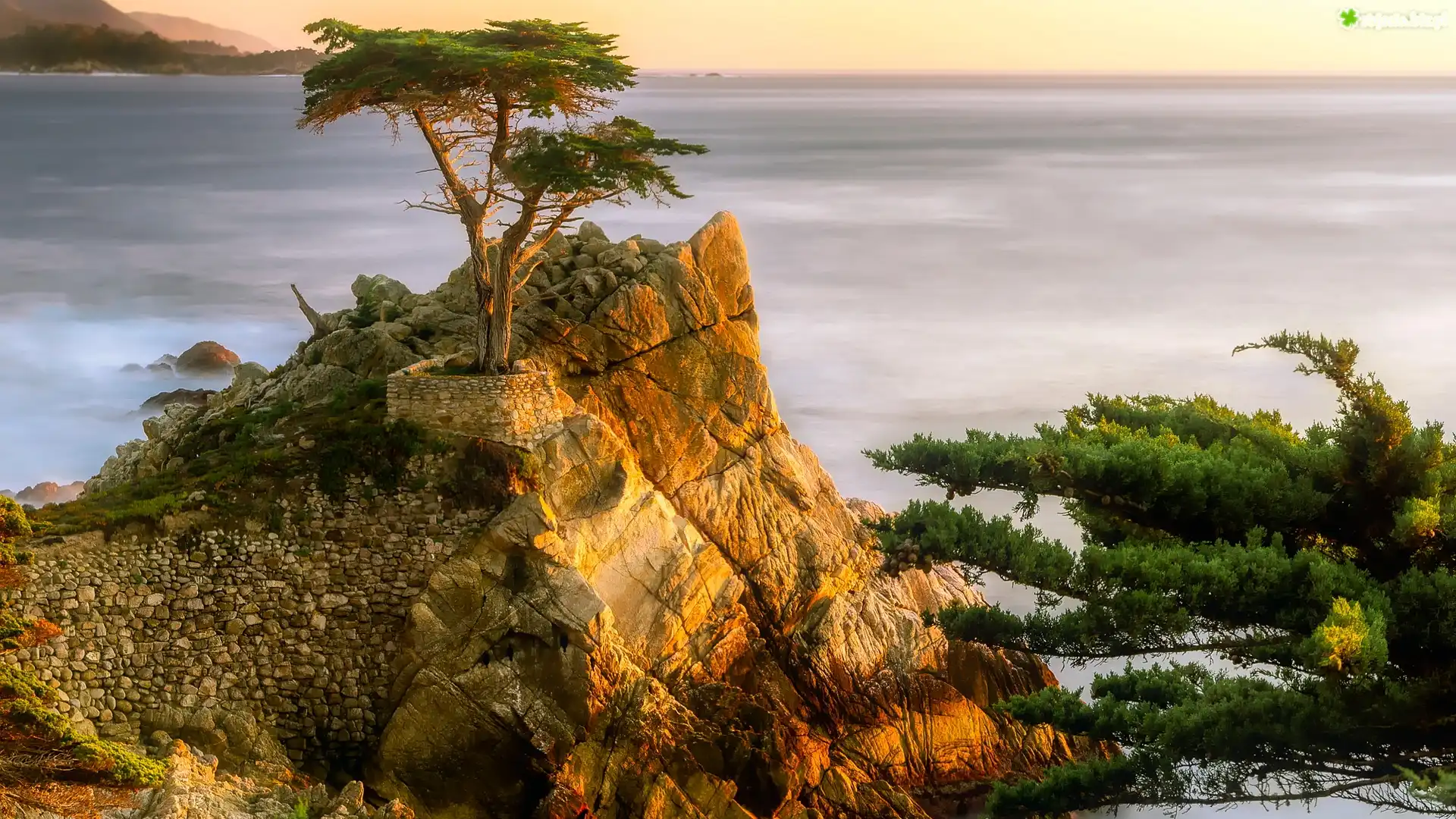 Zdjęcie Cyprys wielkoszyszkowy, Atrakcja, Lone Cypress, Skała, Morze, Pebble Beach, Zatoka Monterey, Morze, Kalifornia, Stany Zjednoczone |