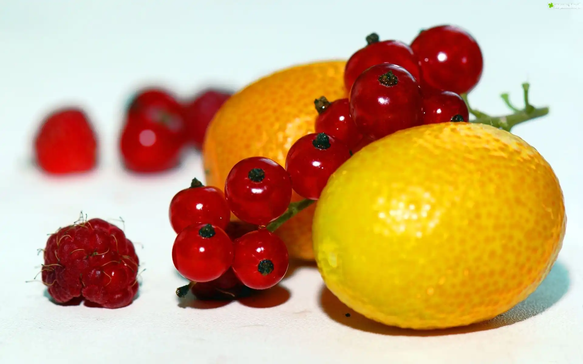 Zdjęcie, Cytrynka, Pomarańcza, Porzeczki, Malina, Owoce