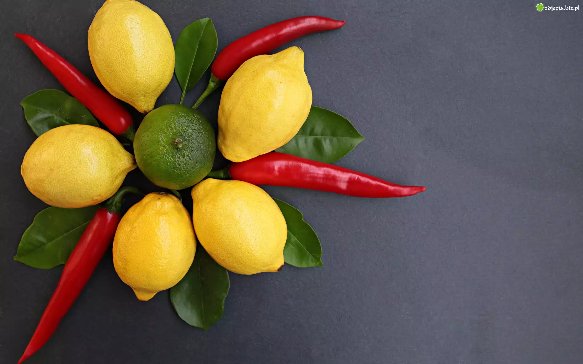 Zdjęcie Cytryny, Papryczki, Chili, Listki