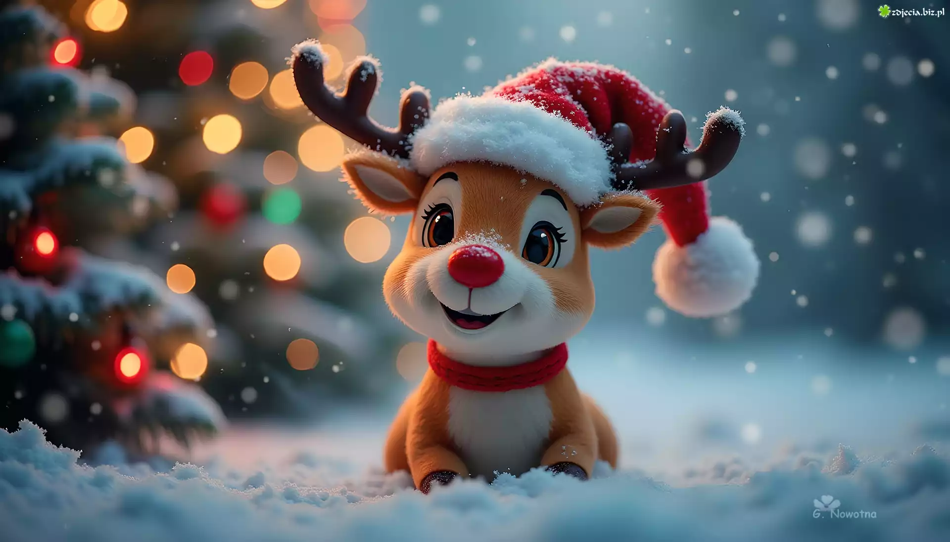 Zdjęcie Renifer, Rudolf, Czerwononosy, Czapka, Mikołaja, Śnieg, Grafika