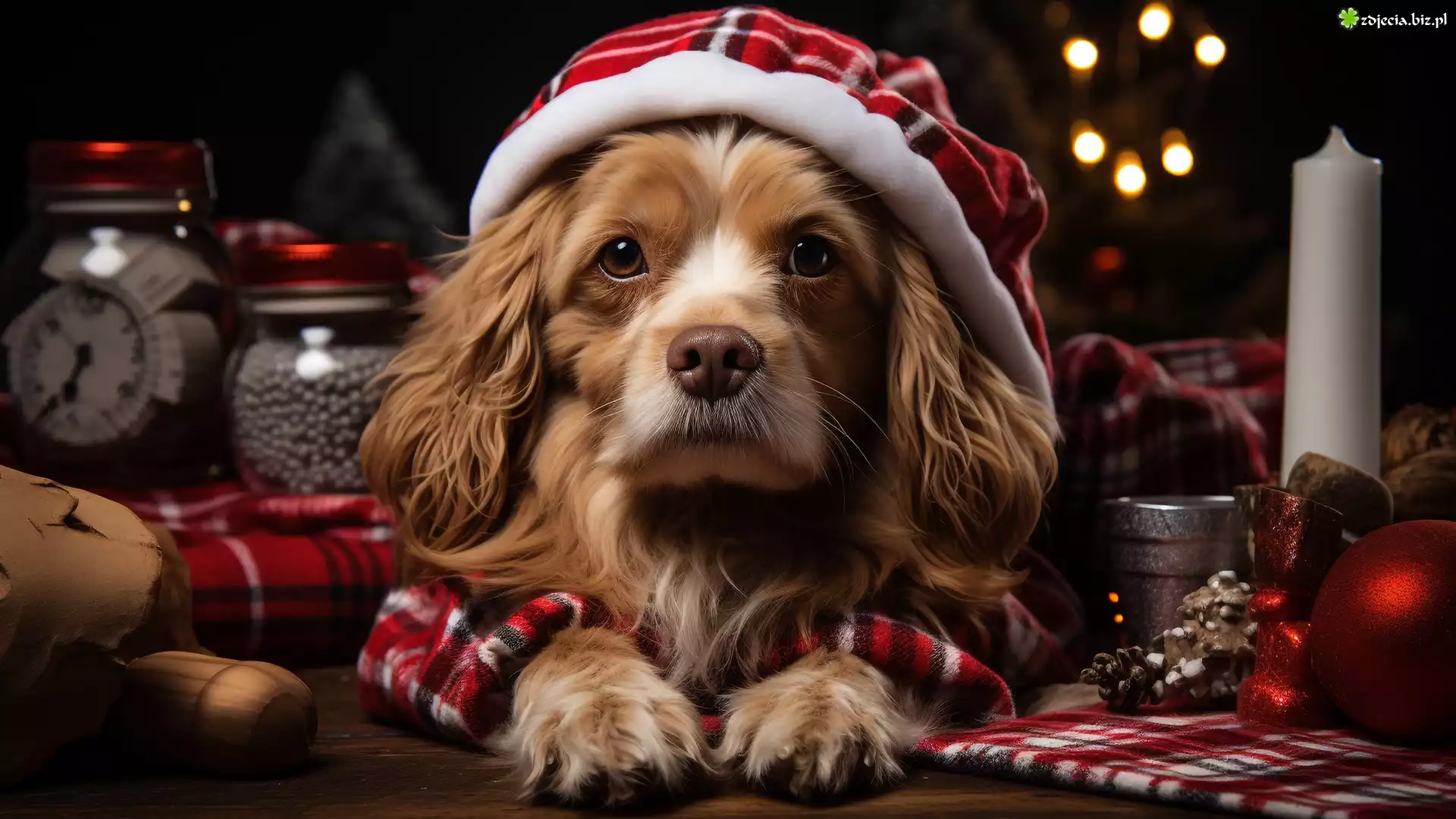 Zdjęcie Grafika, Pies, Szczeniak, Czapka, Szalik, Świeca