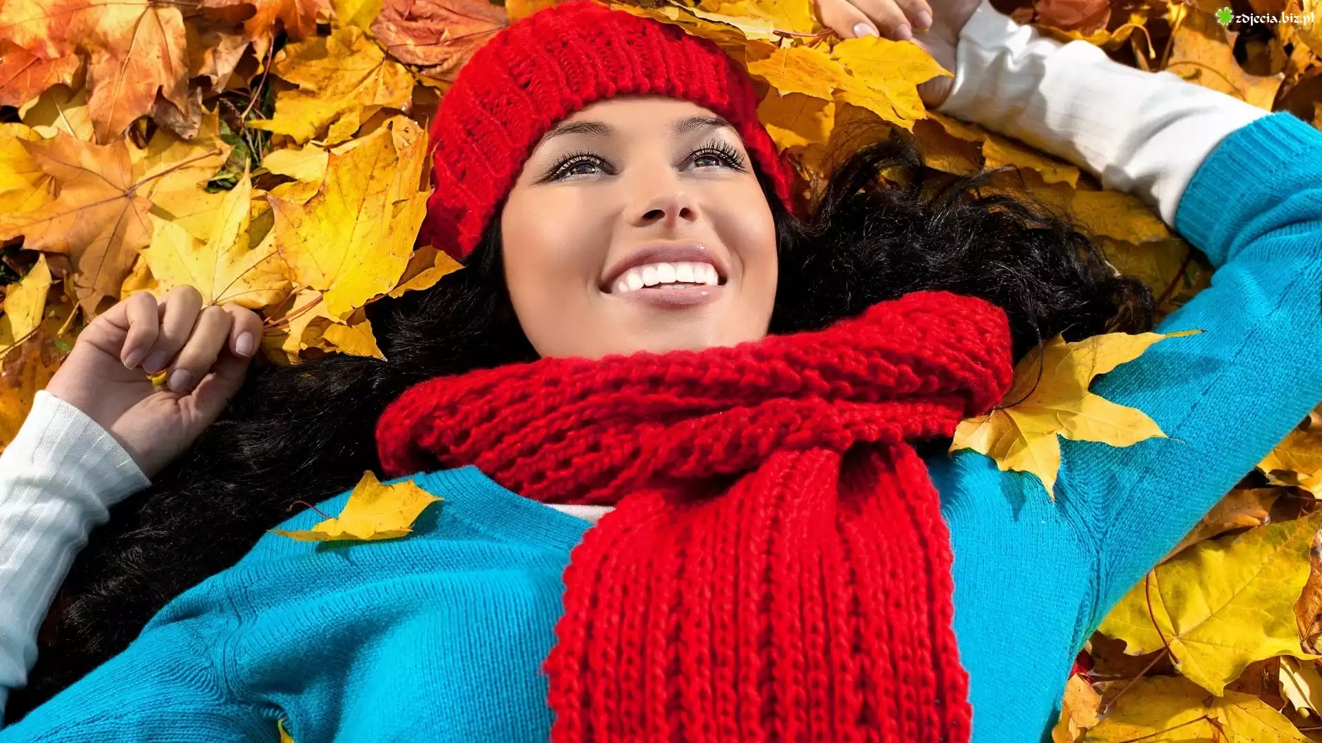 Zdjęcie Dziewczyna, Uśmiech, Czerwona, Czapka, Czerwony, Szalik