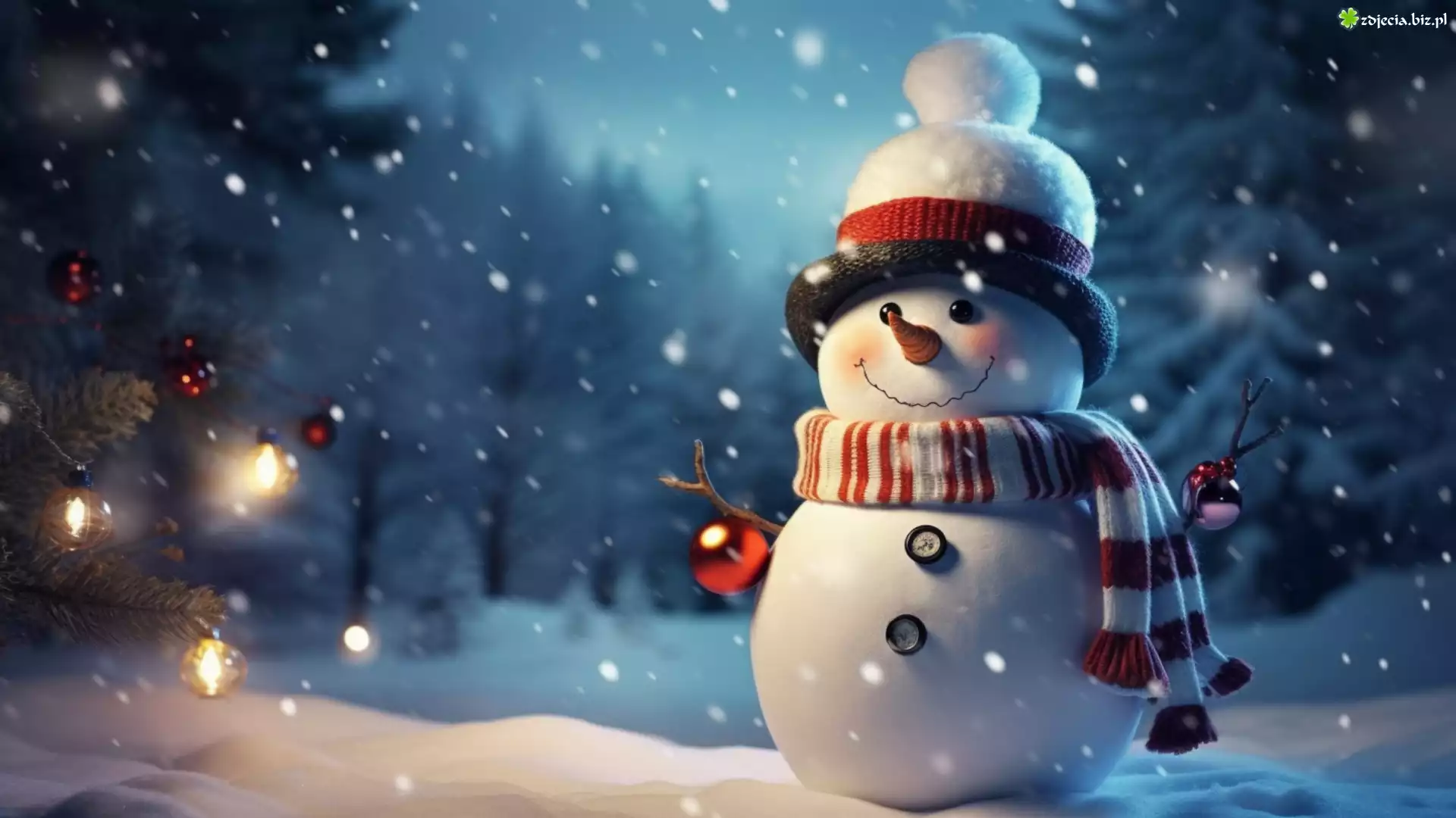 Zdjęcie Zima, Śnieg, Bałwan, Czapka, Szalik, Uśmiech