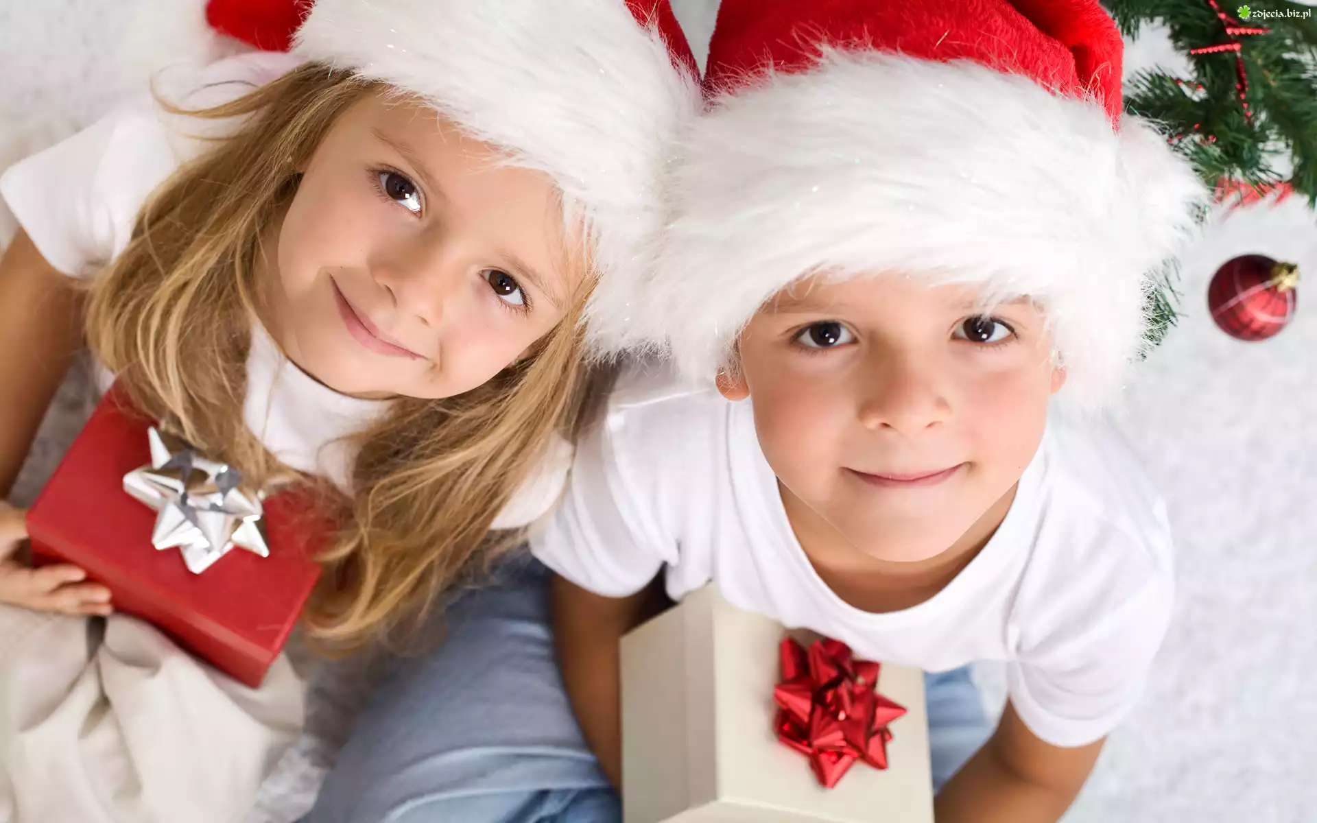 Zdjęcie Święta, Dzieci, Prezenty, Czapki, Mikołaja