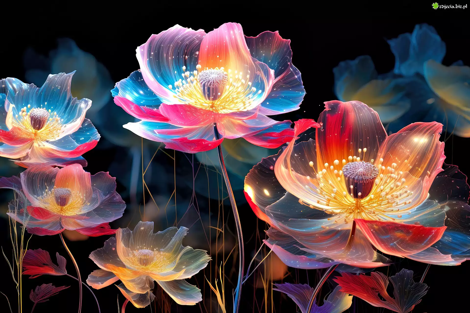 Zdjęcie Kwiaty, Lotosy, Kolorowe, Czarne, Tło, Grafika
