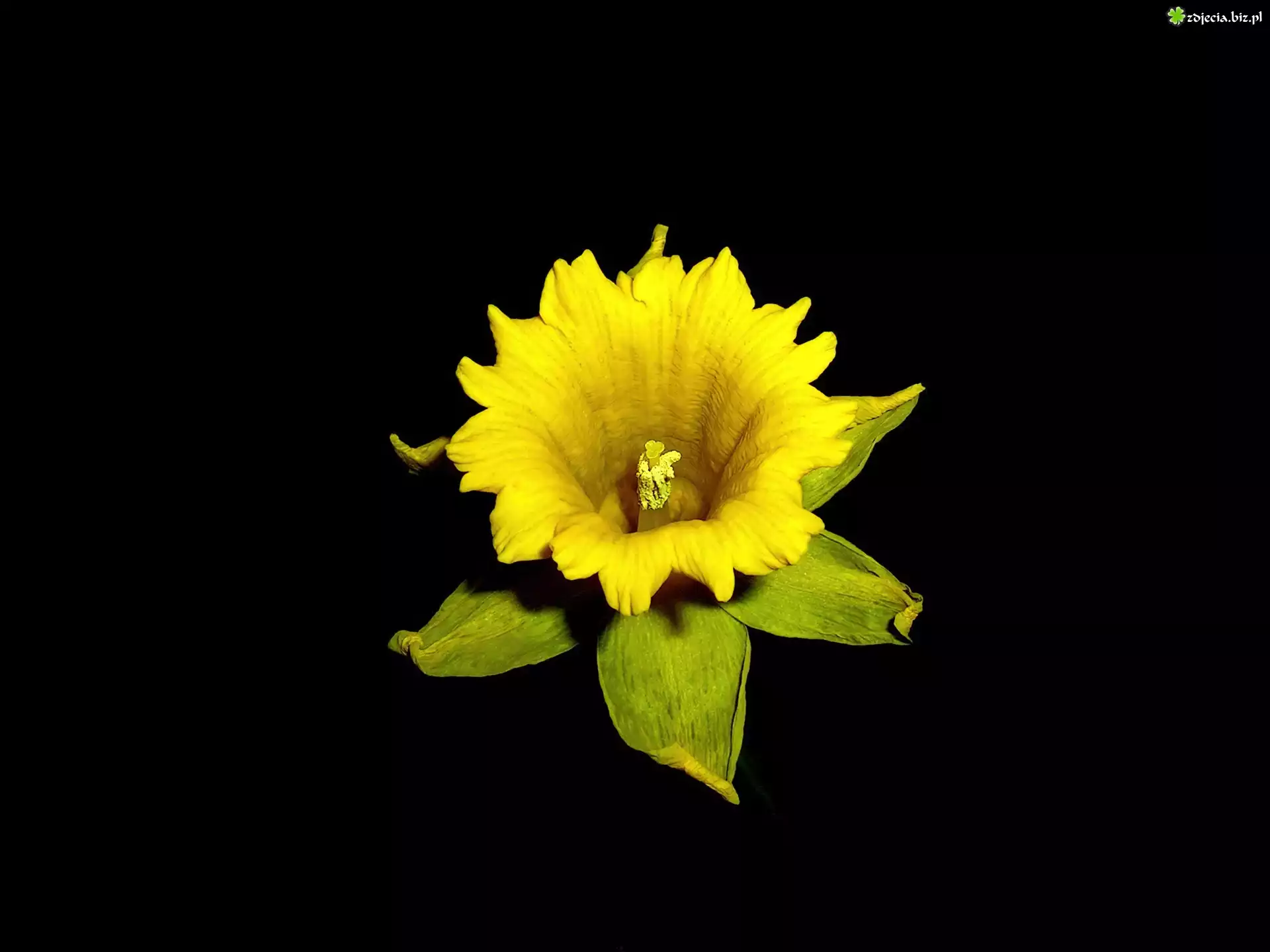 Zdjęcie Żółty, Kwiatek, Czarne, Tło, Żonkil