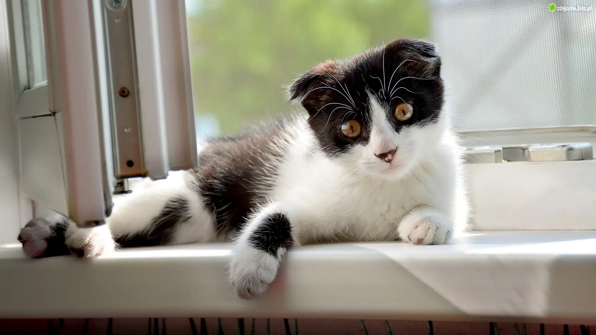 Zdjęcie Czarno-biały, Kot, Parapet, Okno