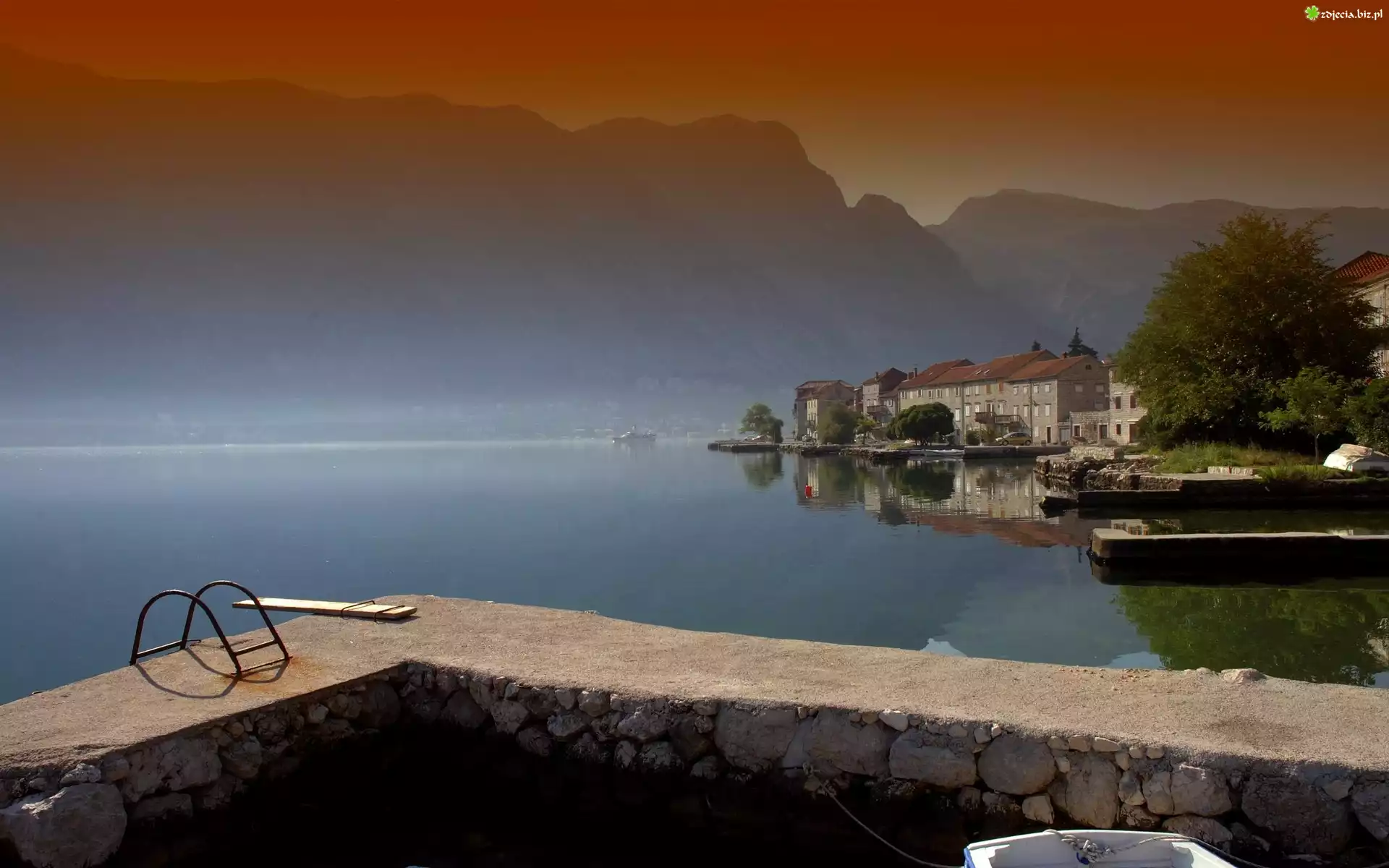 Zdjęcie, Czarnogóra, Kotor, Domy, Góry, Jezioro