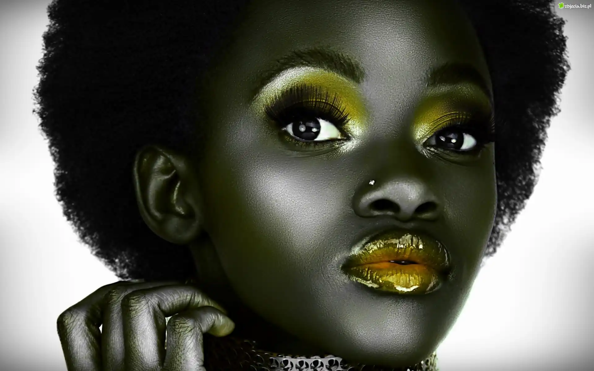 Zdjęcie Czarnoskóra, Modelka, Złoty, Makijaż