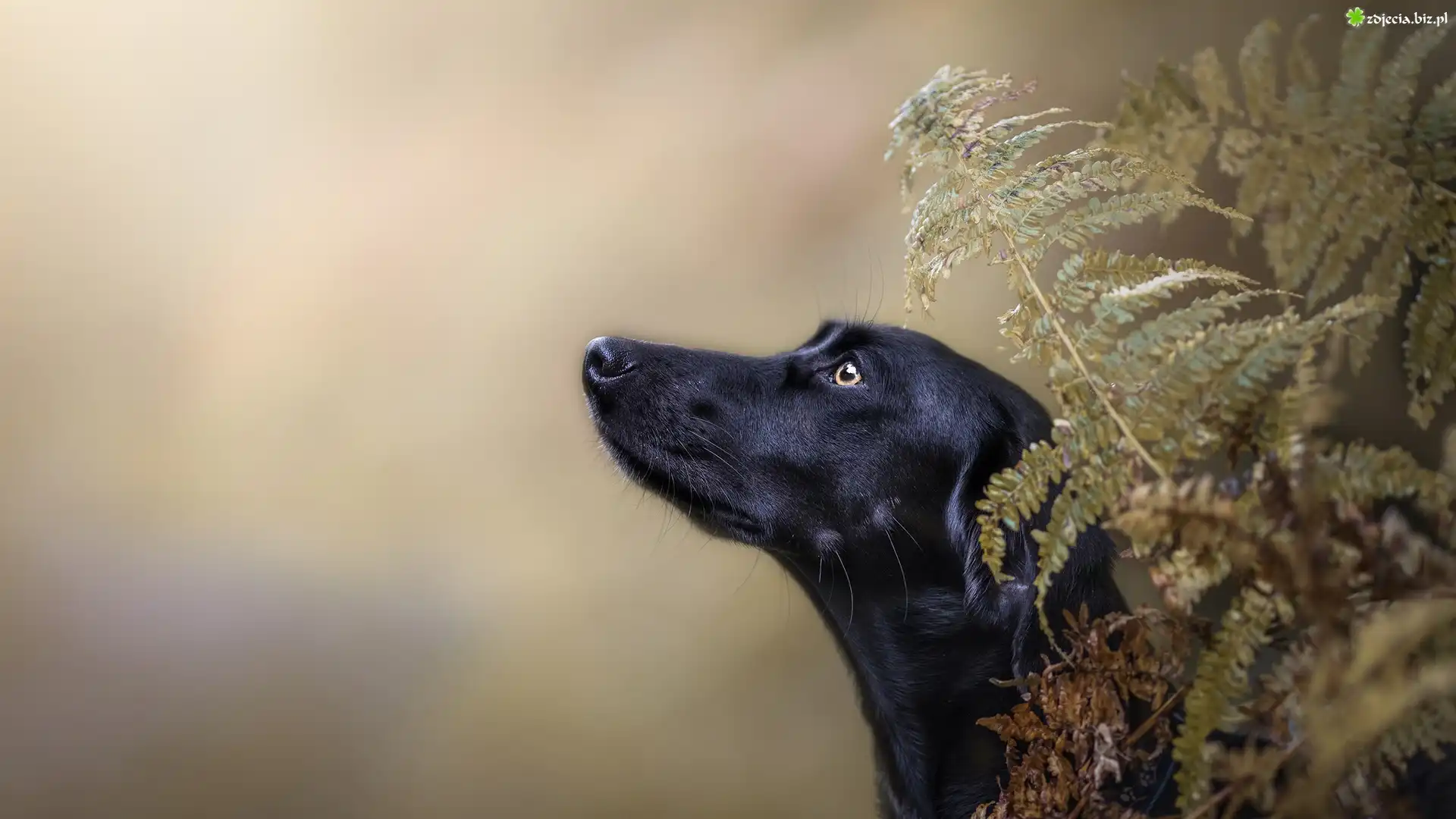 Zdjęcie Czarny, Pies, Mordka, Paprocie, Rozmyte, Tło