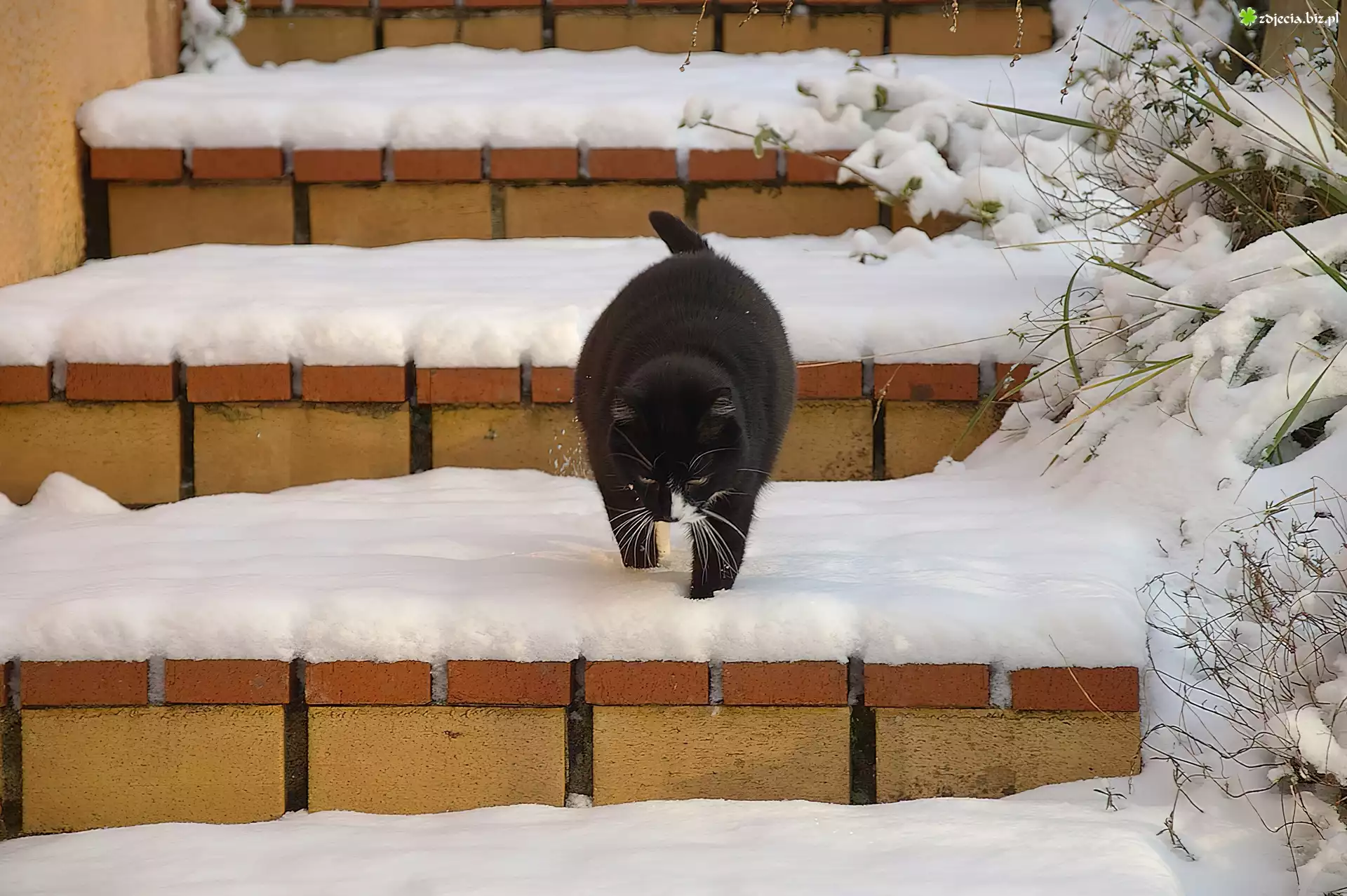 Zdjęcie Czarny, Kotek, Schody, Zima