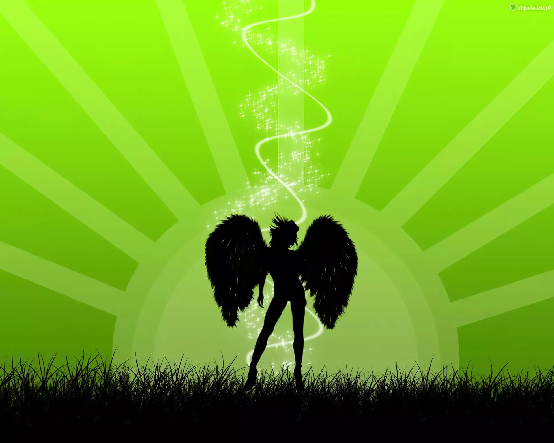 Zdjęcie, Czarny, Anioł, Zielone, Tło