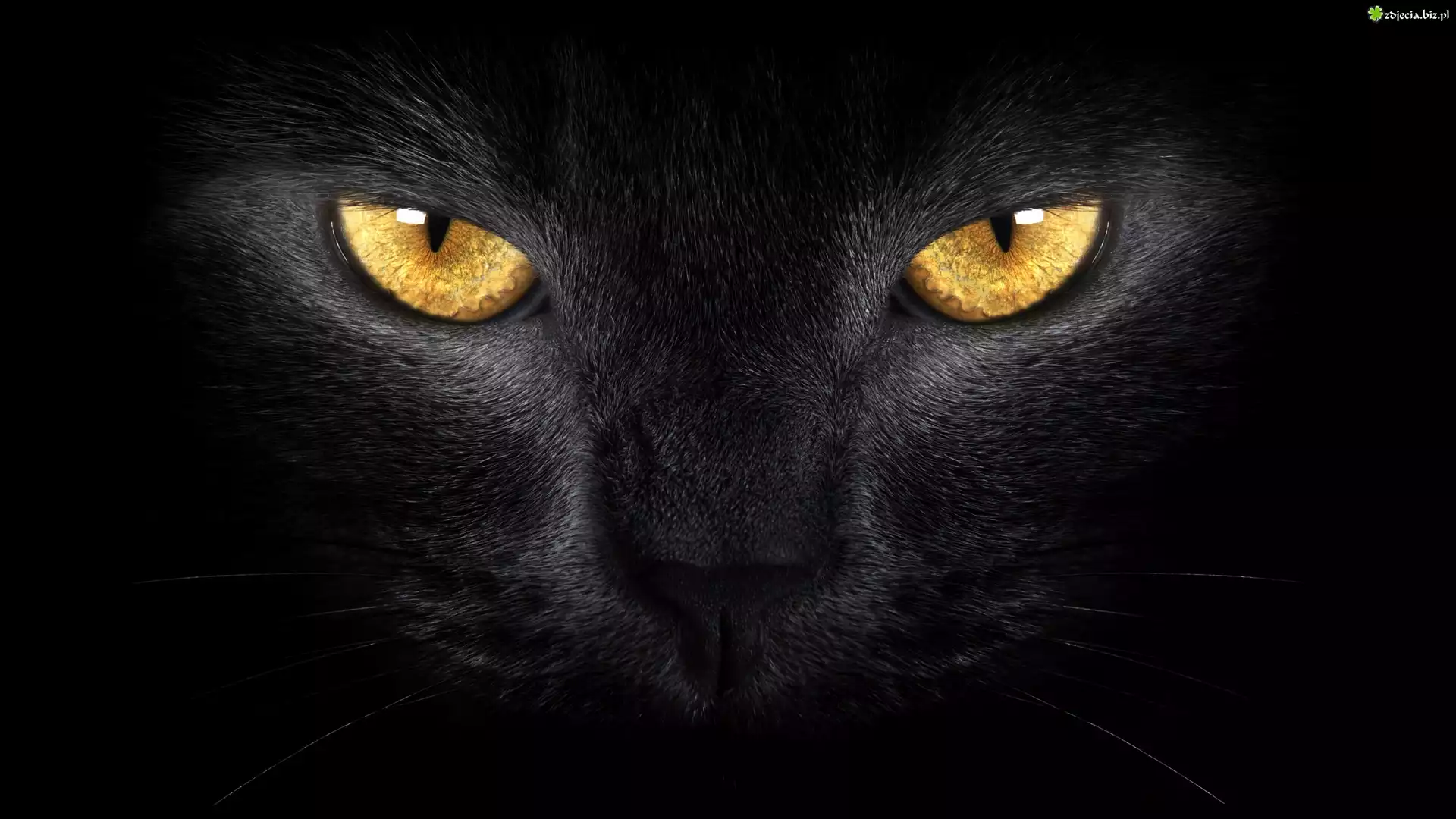 Zdjęcie Czarny, Kot, Złote, Oczy