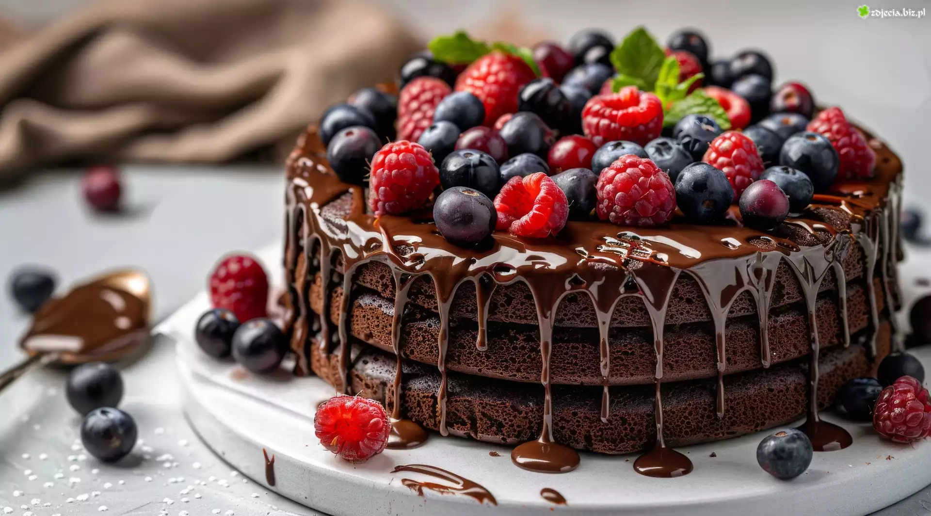 Zdjęcie Ciastko, Czekolada, Polewa, Owoce, Grafika