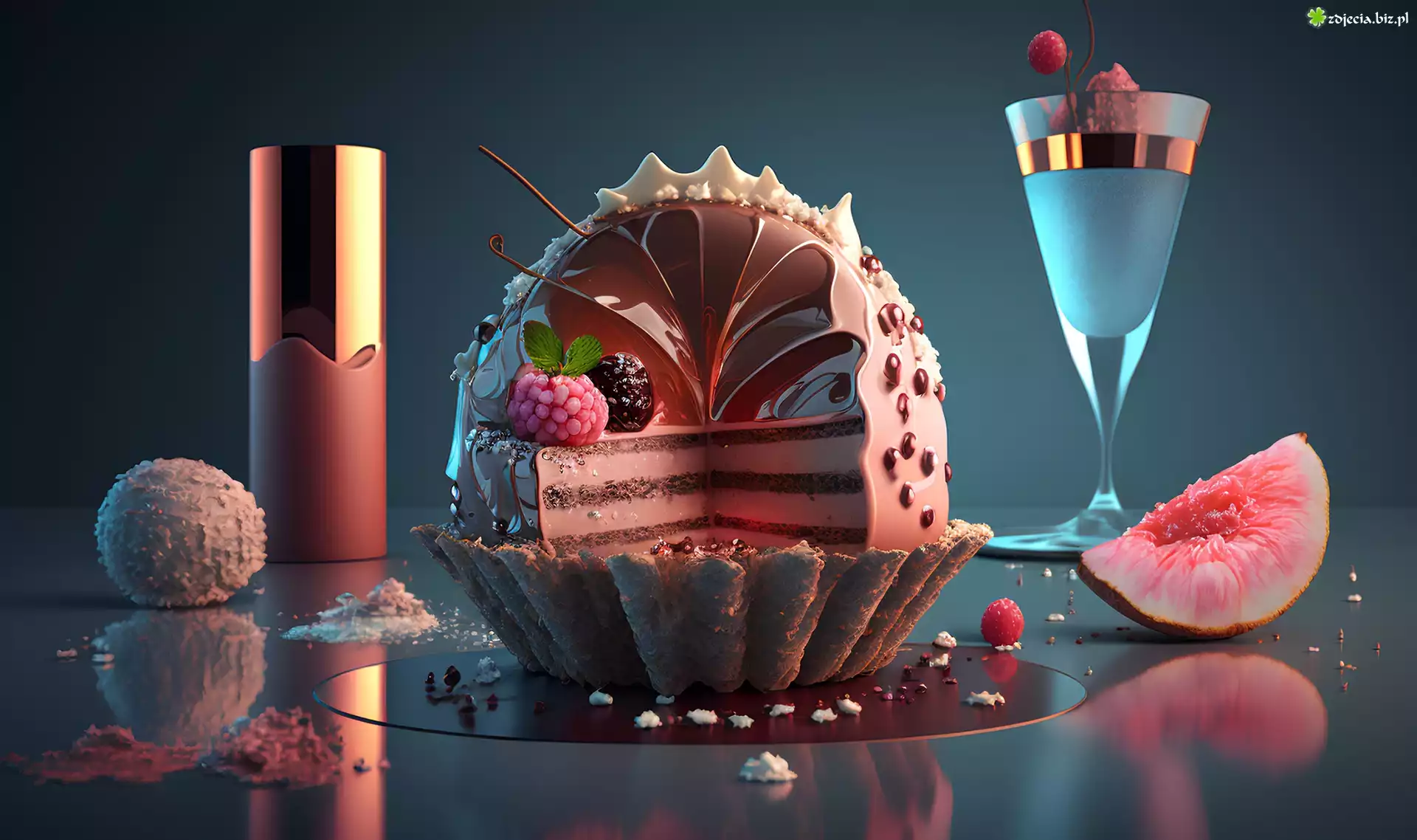 Zdjęcie, Ciasto, Czekoladowe, Owoce, Kieliszek, Grafika