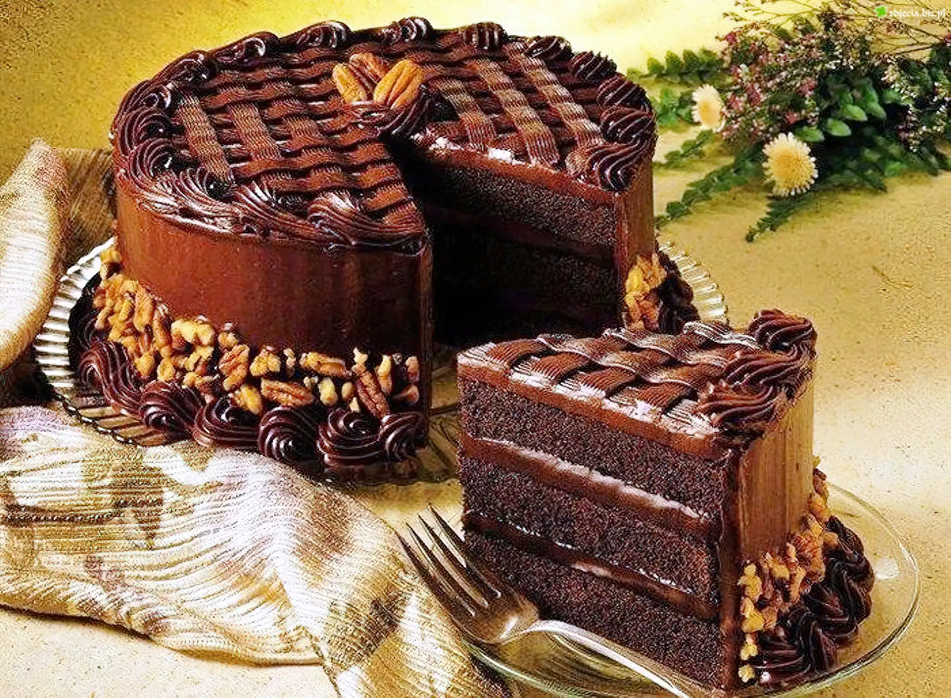 Zdjęcie Tort, Czekoladowy, Kwiatki