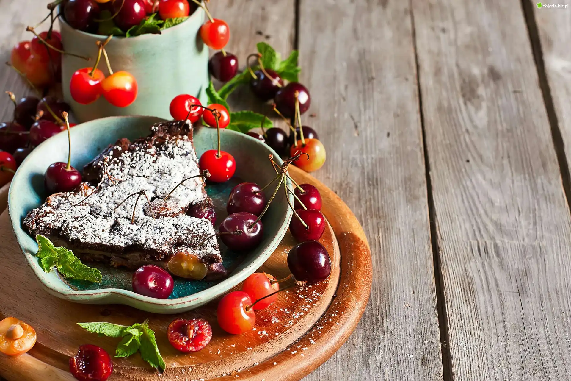 Zdjęcie Czereśnie, Ciasto, Spodek, Dzbanek, Deska
