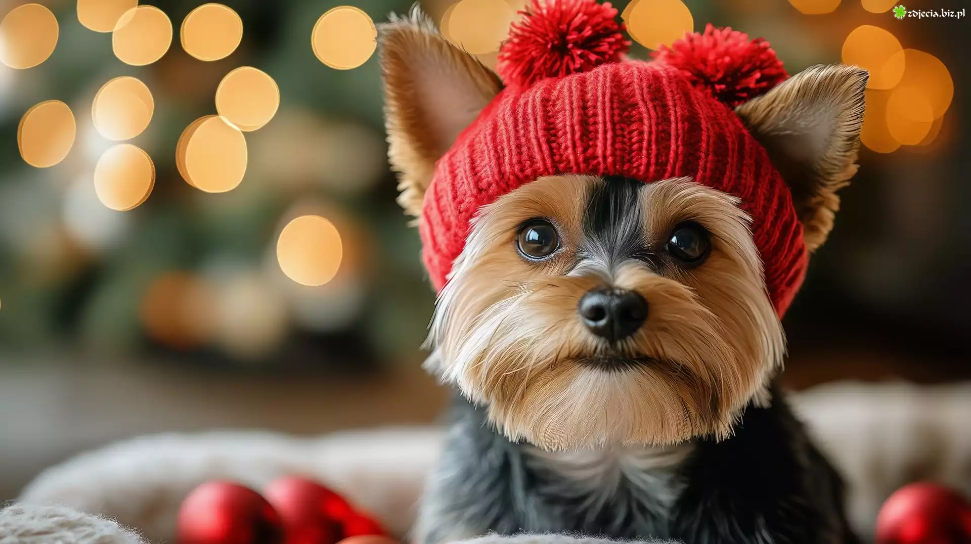 Zdjęcie, Pies, Yorkshire terrier, Czerwona, Czapka, AI