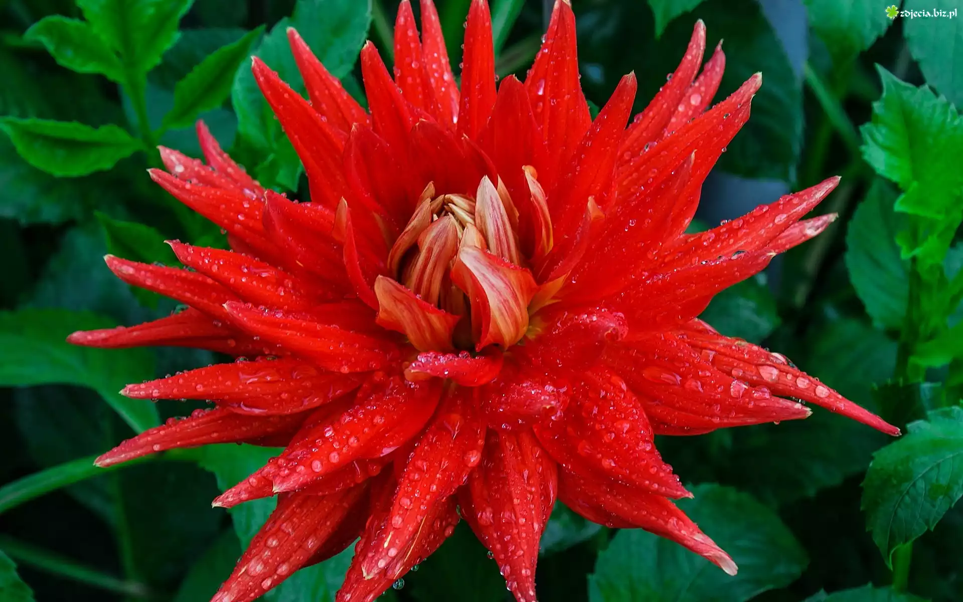 Zdjęcie Czerwona, Dalia, Krople, Deszczu