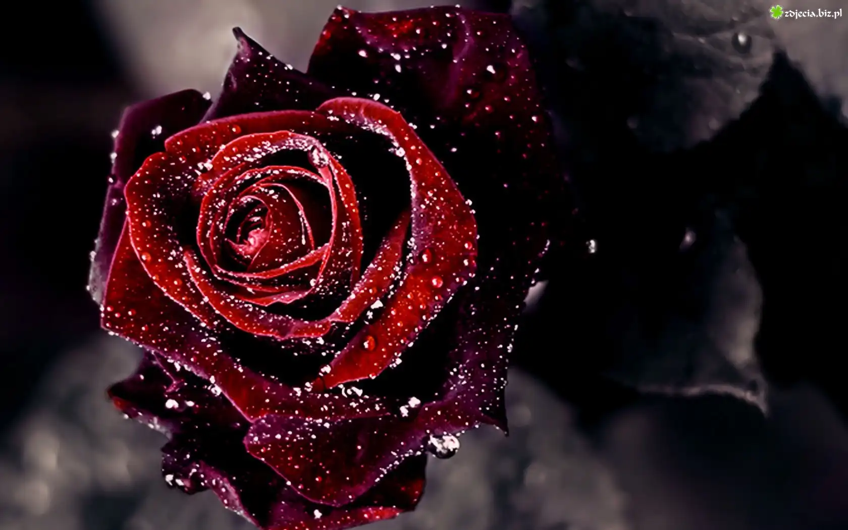 Zdjęcie Czerwona, Róża, Krople, Wody