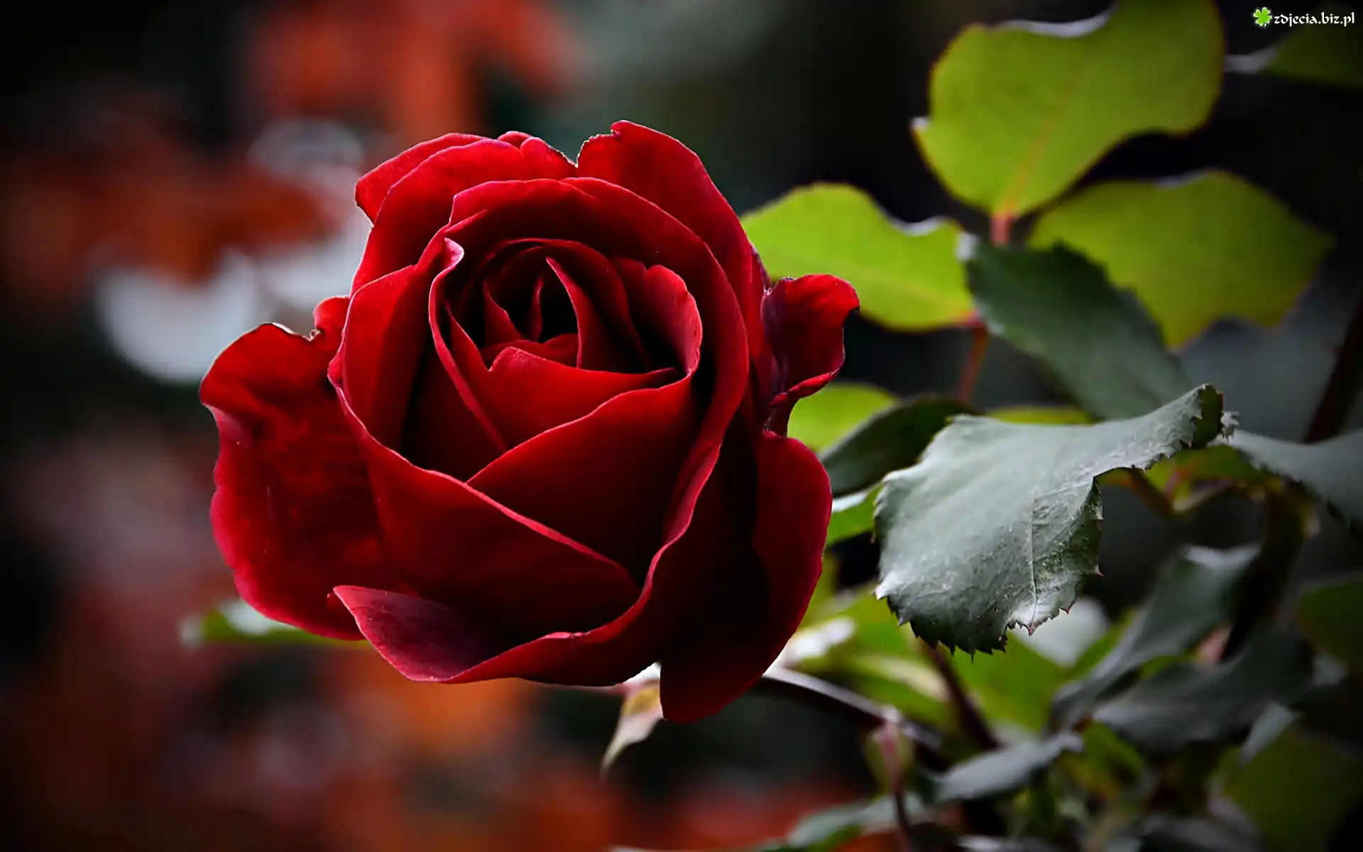 Zdjęcie Czerwona, Róża, Listki, Rozmycie