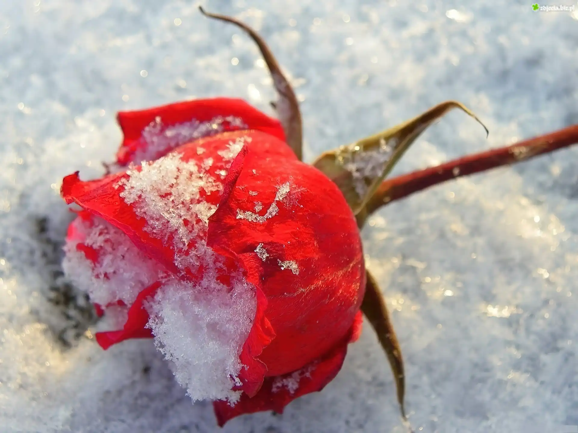Zdjęcie, Czerwona, Róża, Śnieg,