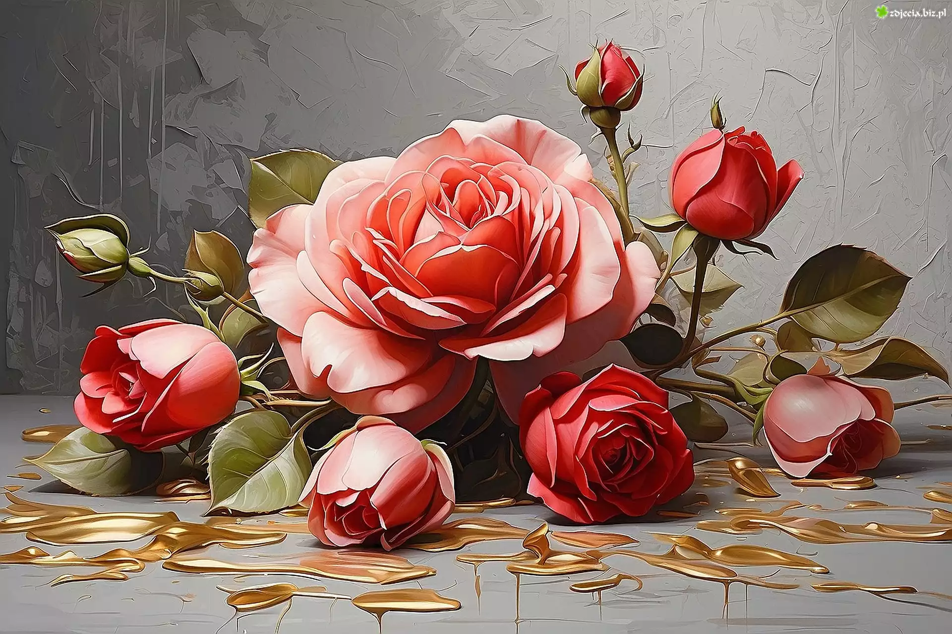 Zdjęcie Róża, Czerwona, Pąki, Szare tło