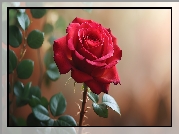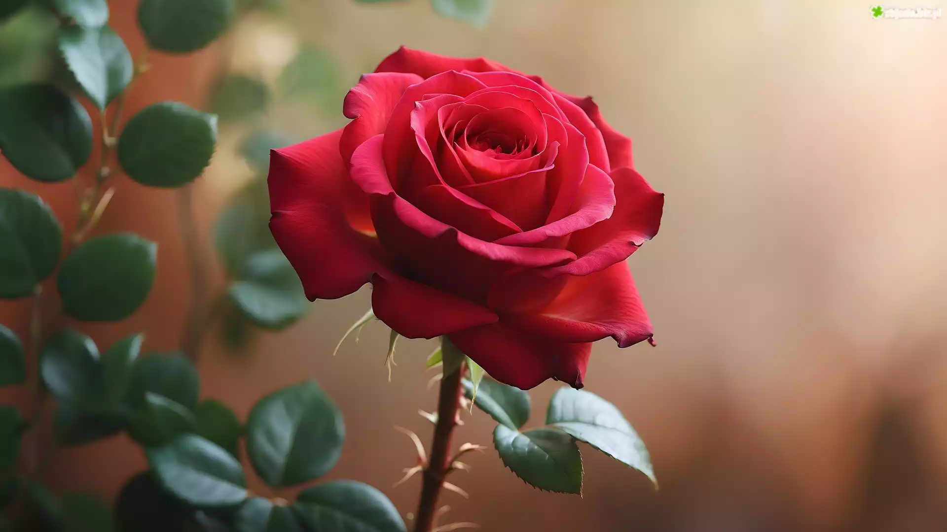 Zdjęcie Rozkwitająca, Czerwona, Róża, Zielone, Listki