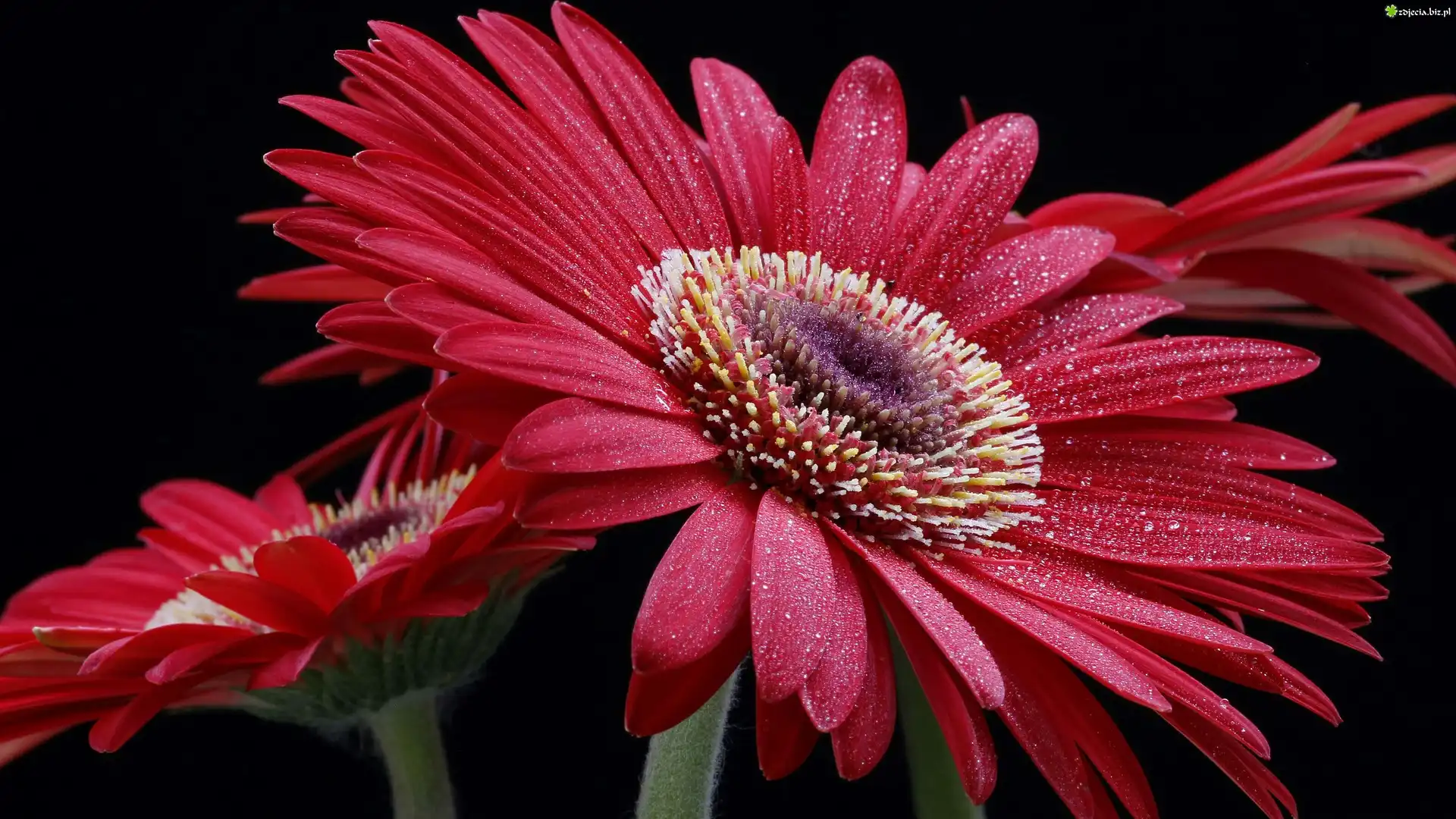 Zdjęcie Czerwone, Kwiaty, Gerbery, Czarne tło