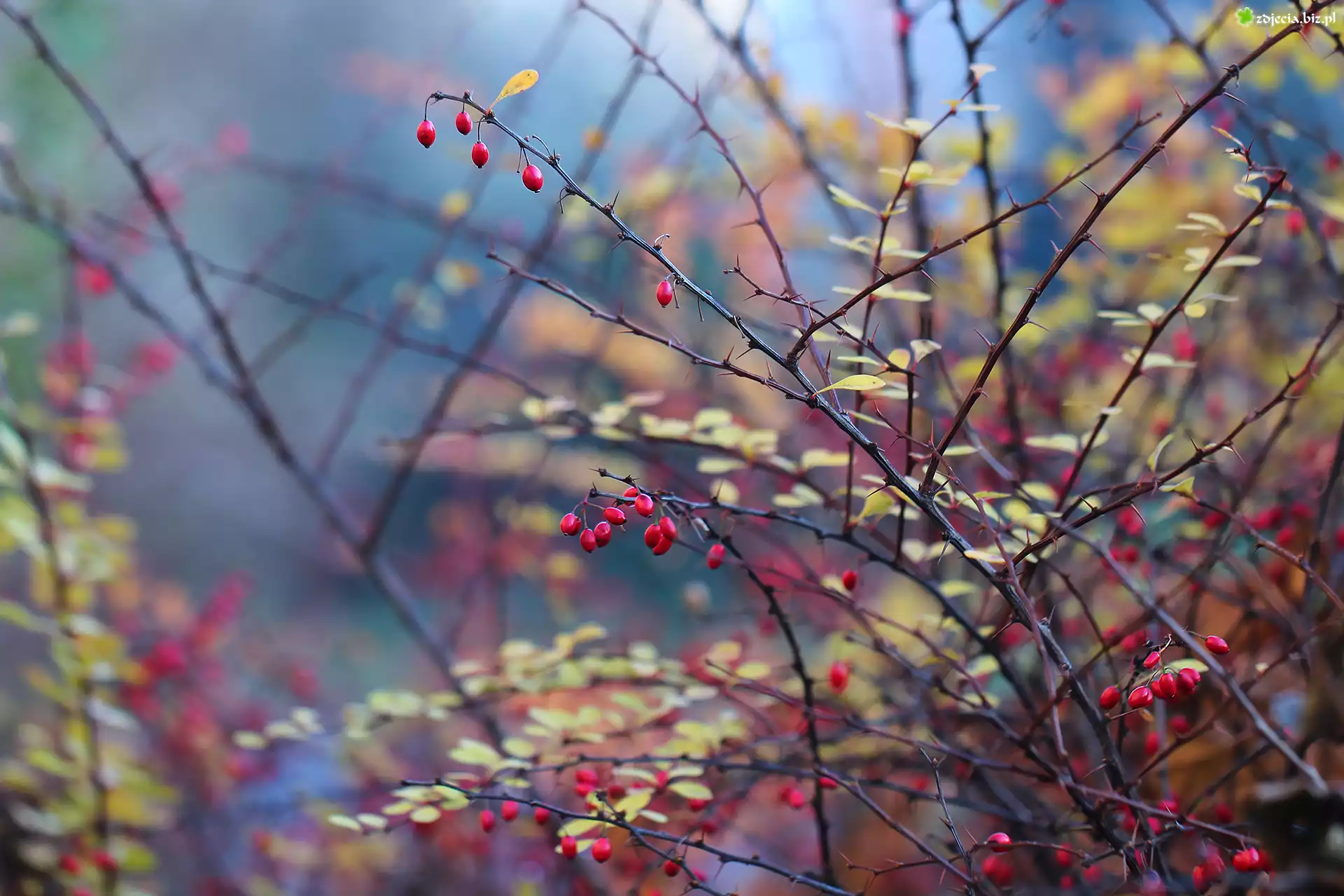 Zdjęcie Czerwone, Owoce, Berberys, Gałązki, Krzew