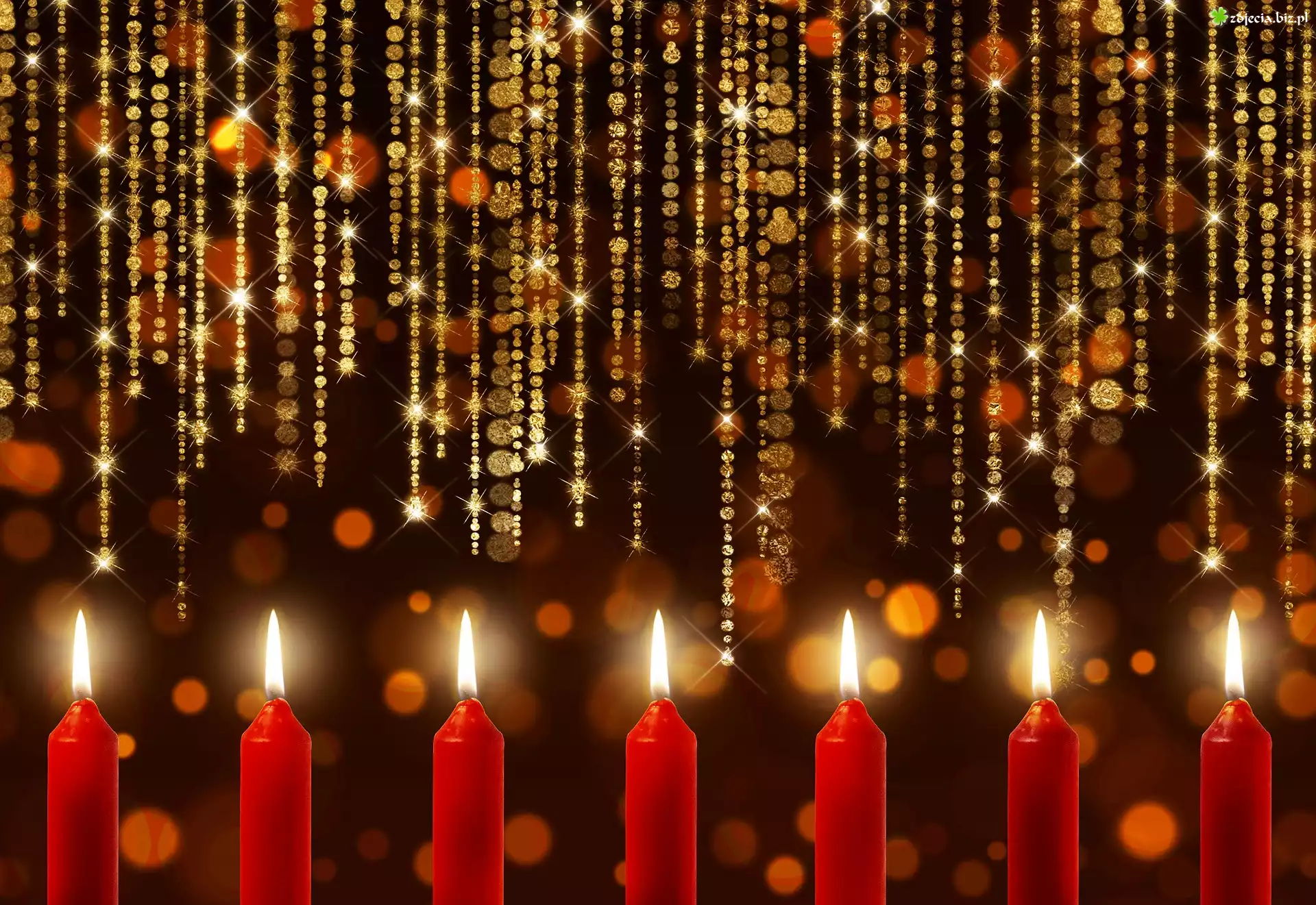 Zdjęcie, Czerwone, Świece, Wiszące, Kryształki, Koraliki