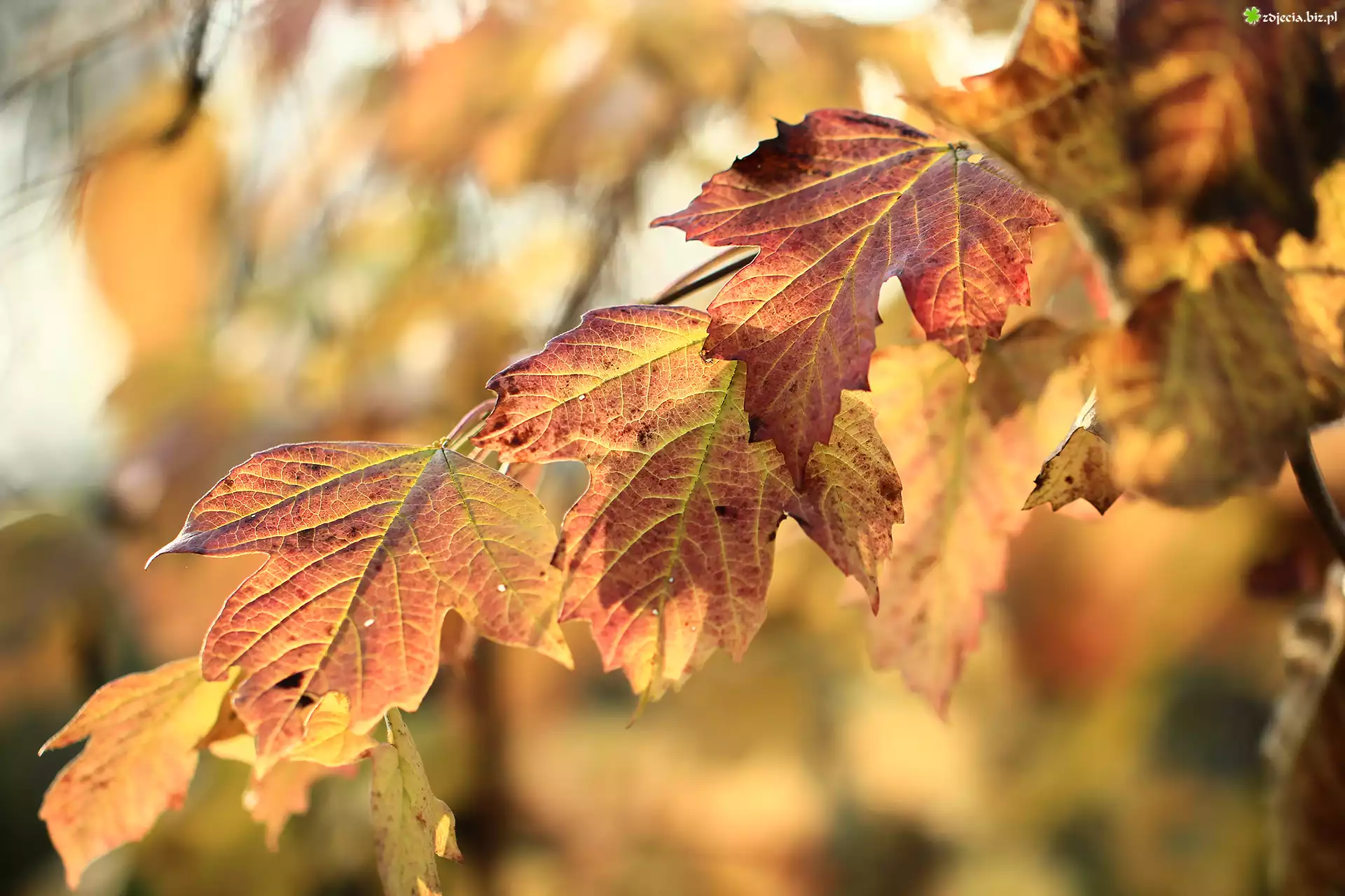 Zdjęcie Czerwone, Jesienne, Liście, Gałązka
