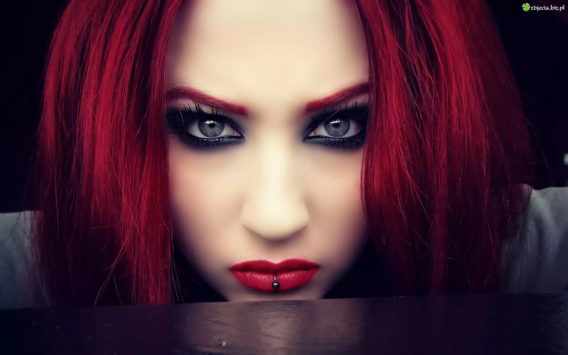 Zdjęcie Czerwone, Włosy, Kolczyk, Makijaż, Twarz