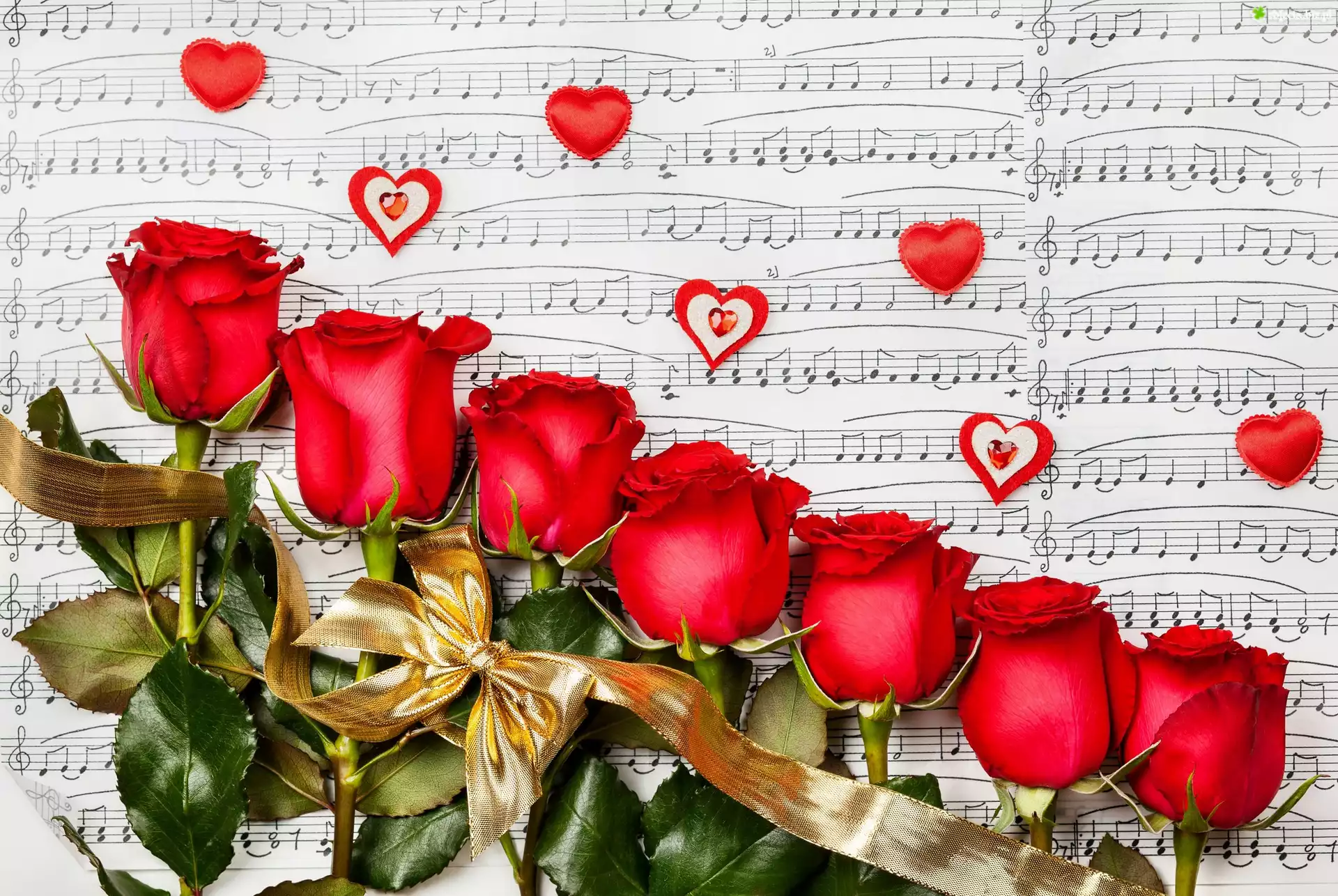 Zdjęcie Czerwone, Róże, Serduszka, Nuty, Walentynki