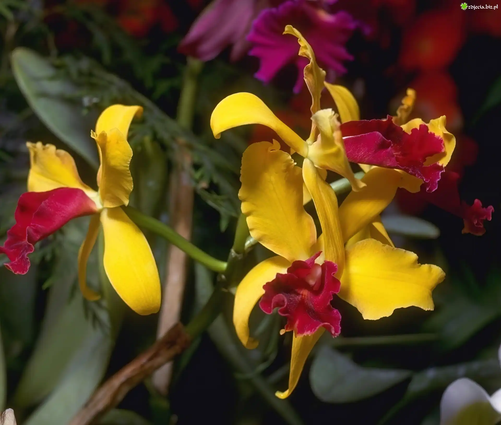 Zdjęcie, Żółto, Czerwone, Storczyki