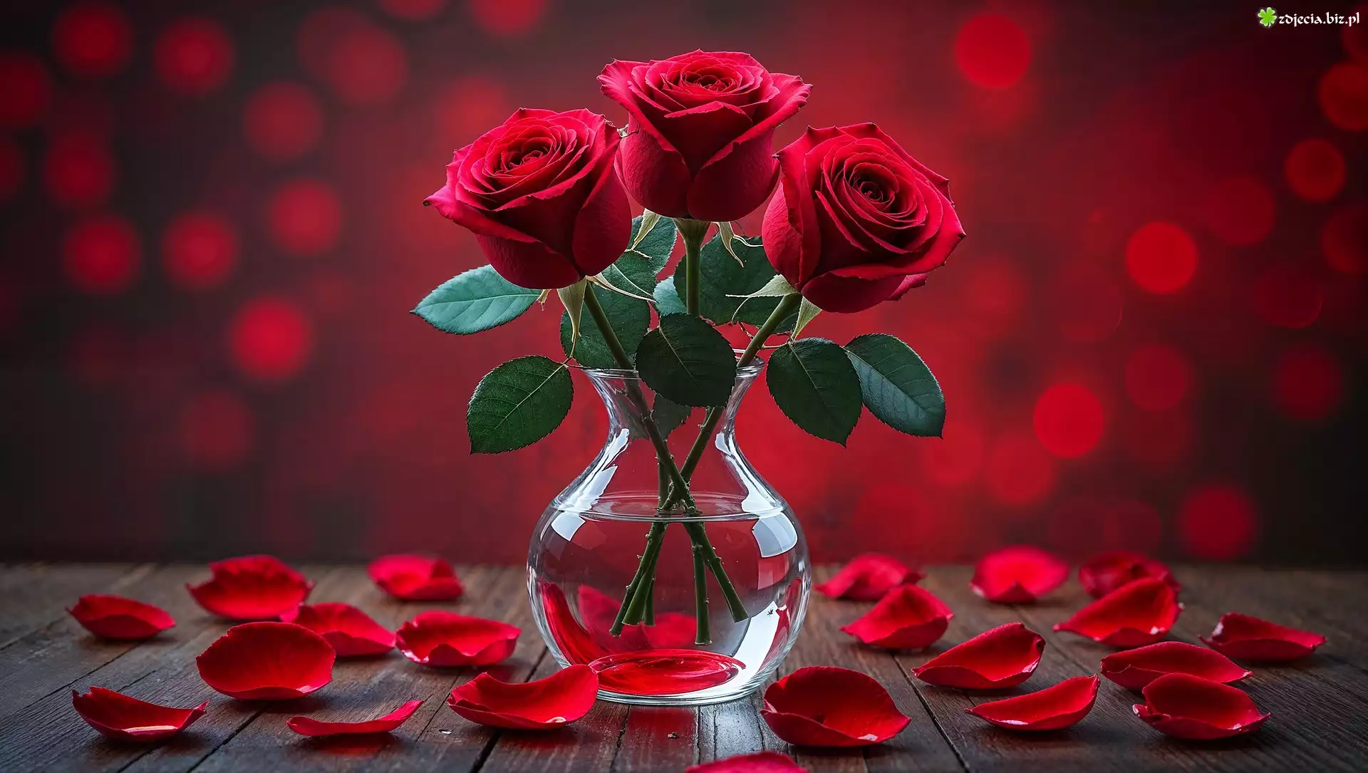 Zdjęcie Kwiaty, Czerwone, Róże, Wazon, Płatki