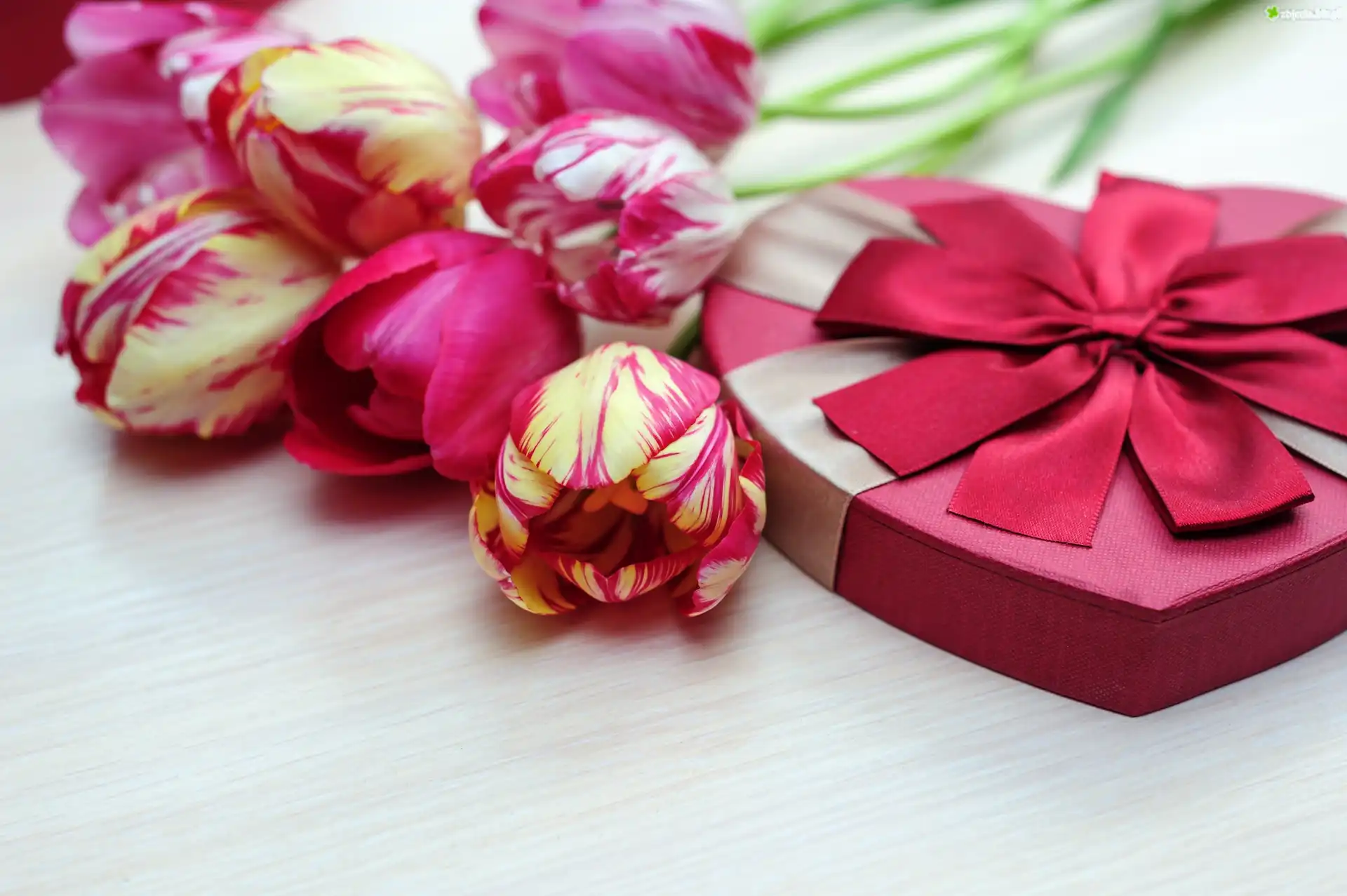 Zdjęcie Czerwono-żółte, Tulipany, Prezent, Walentynki