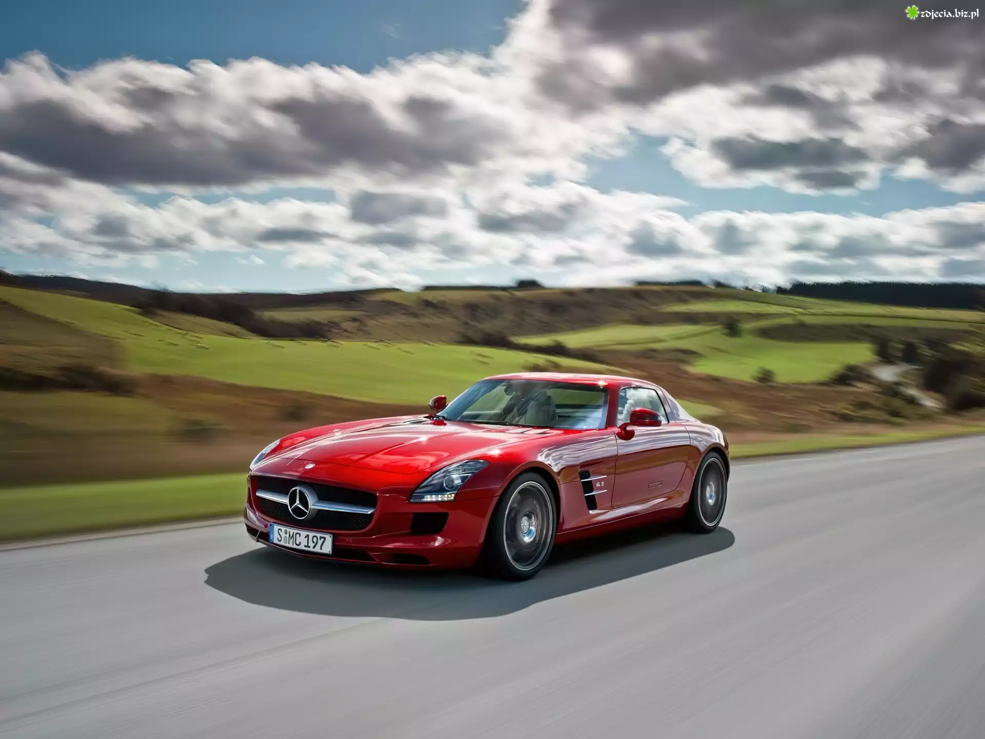 Zdjęcie Czerwony, Mercedes Benz SLS, AMG, Droga