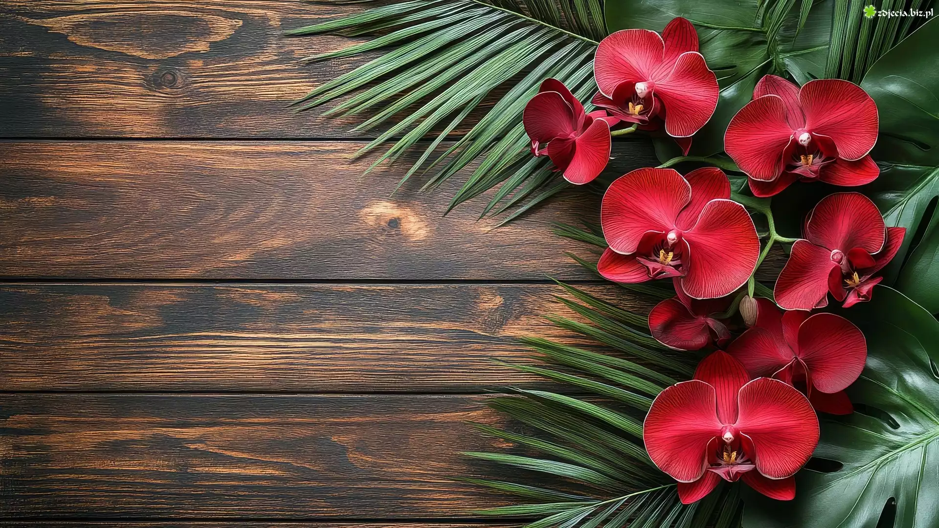 Zdjęcie Grafika, Czerwony, Storczyk, Liście, Deski