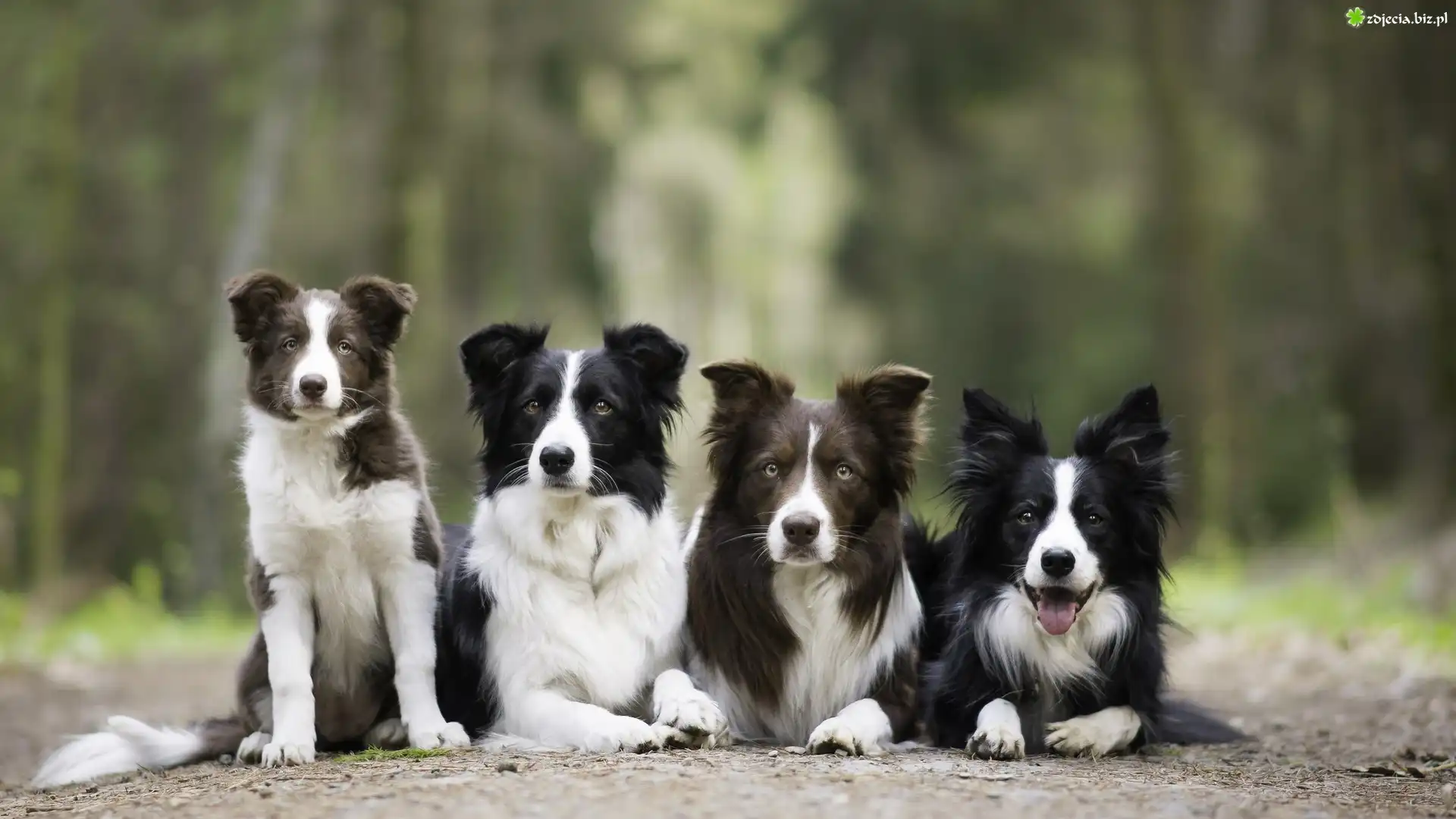 Zdjęcie Cztery, Psy, Border collie, Alejka