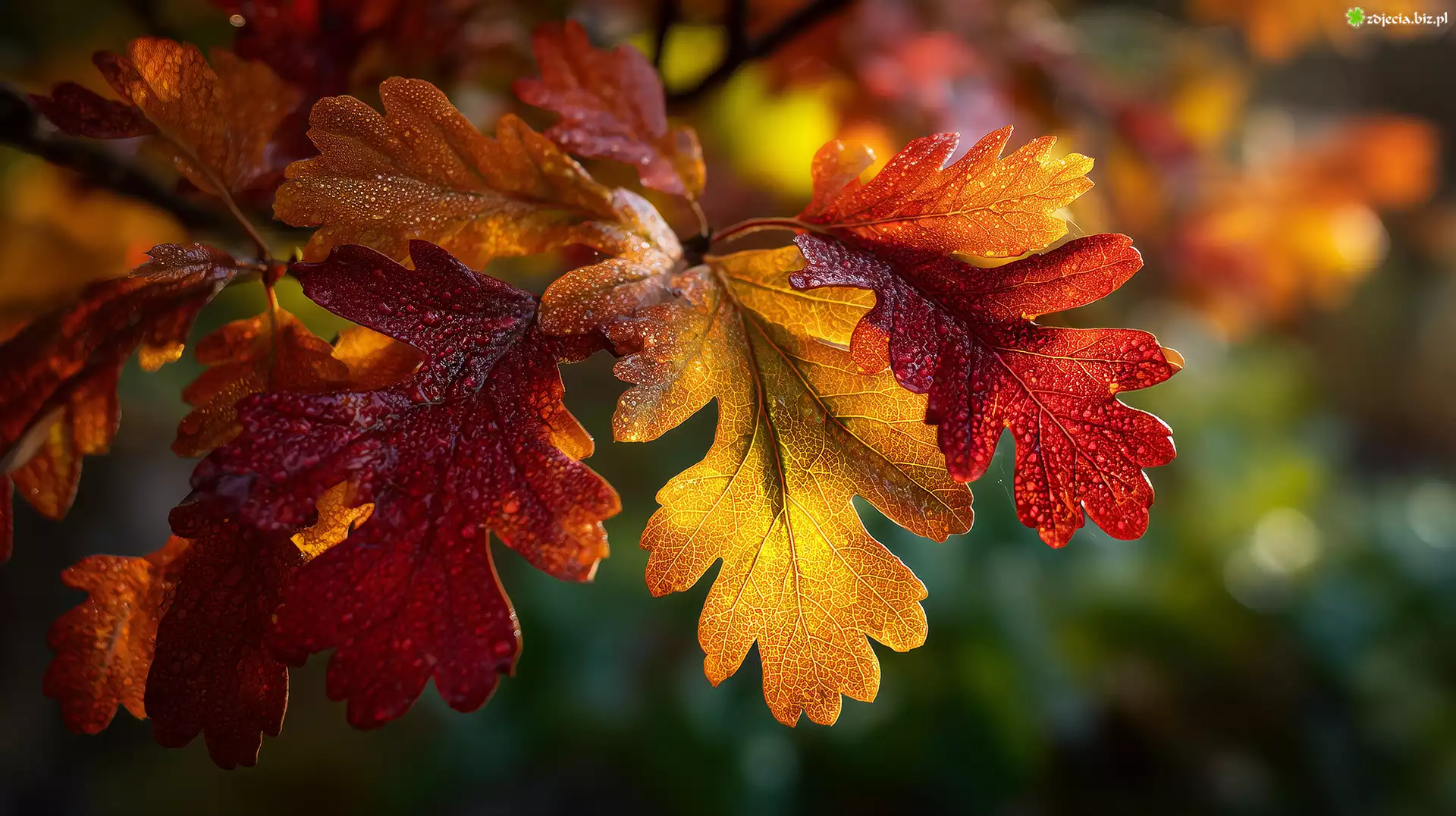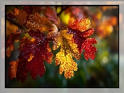 Zdjęcie Liście, Jesienne, Dębowe, Dąb, Krople, Grafika AI