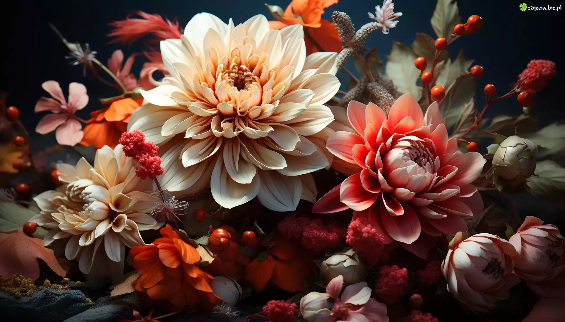 Zdjęcie Kwiaty, Dalie, Ciemne tło, Grafika